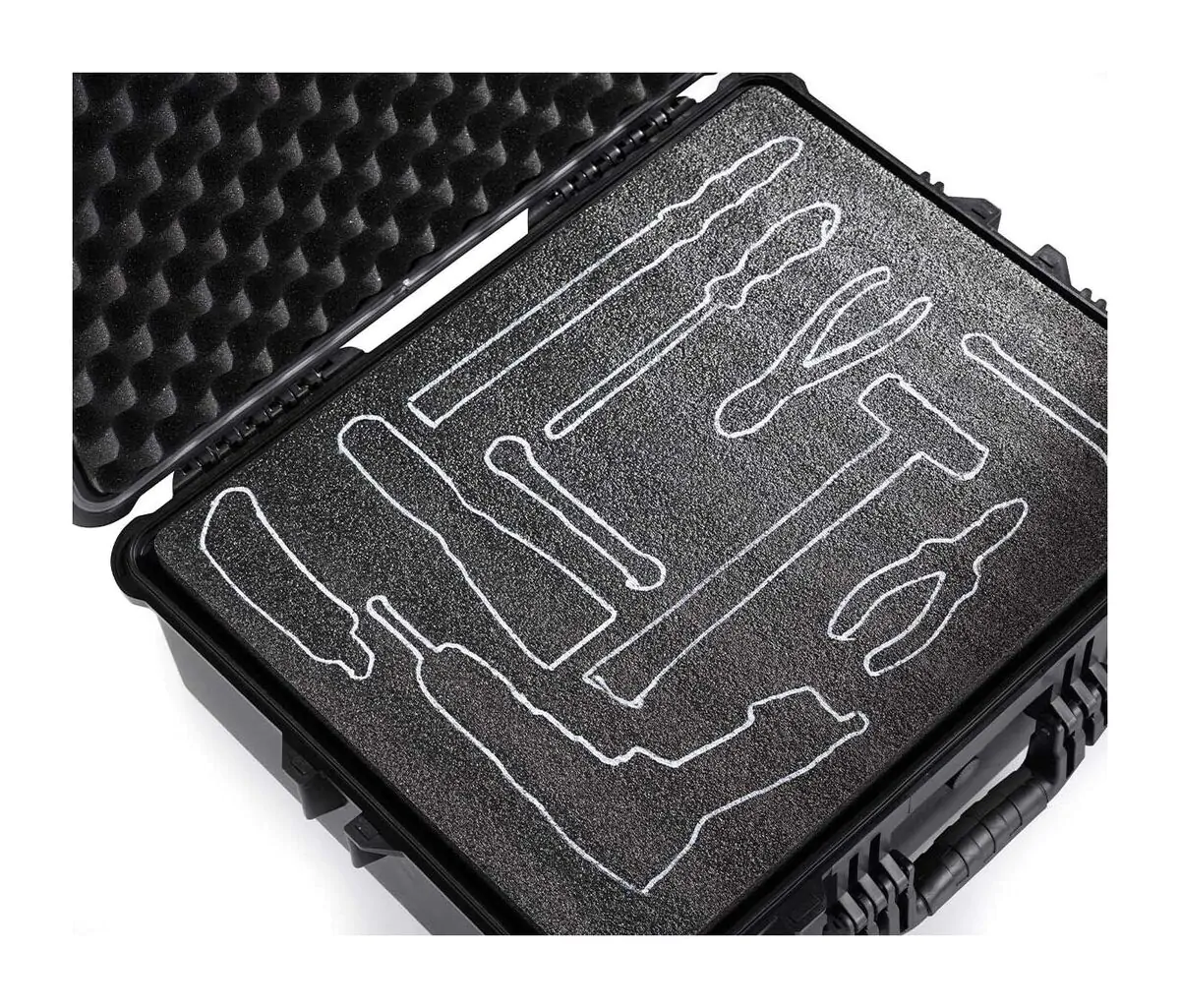 Multilayer Foam is an easy and professional way to organise and protect your equipment. All you need is a marker, a sharp knife, and your fingers. Multilayer Foam is a PE specialty foam that is pre-laminated in layers and can be easily cut and shaped to fit your equipment, tools, etc., precisely. Forget about troublesome pick-foam that crumbles, is soft, and can only be adjusted in squares, yet still falls apart after a short time. With multilayer foam, you get a medium-hard foam type that you can quickly customise to your equipment by cutting around it and simply peeling the foam to the depth you desire.