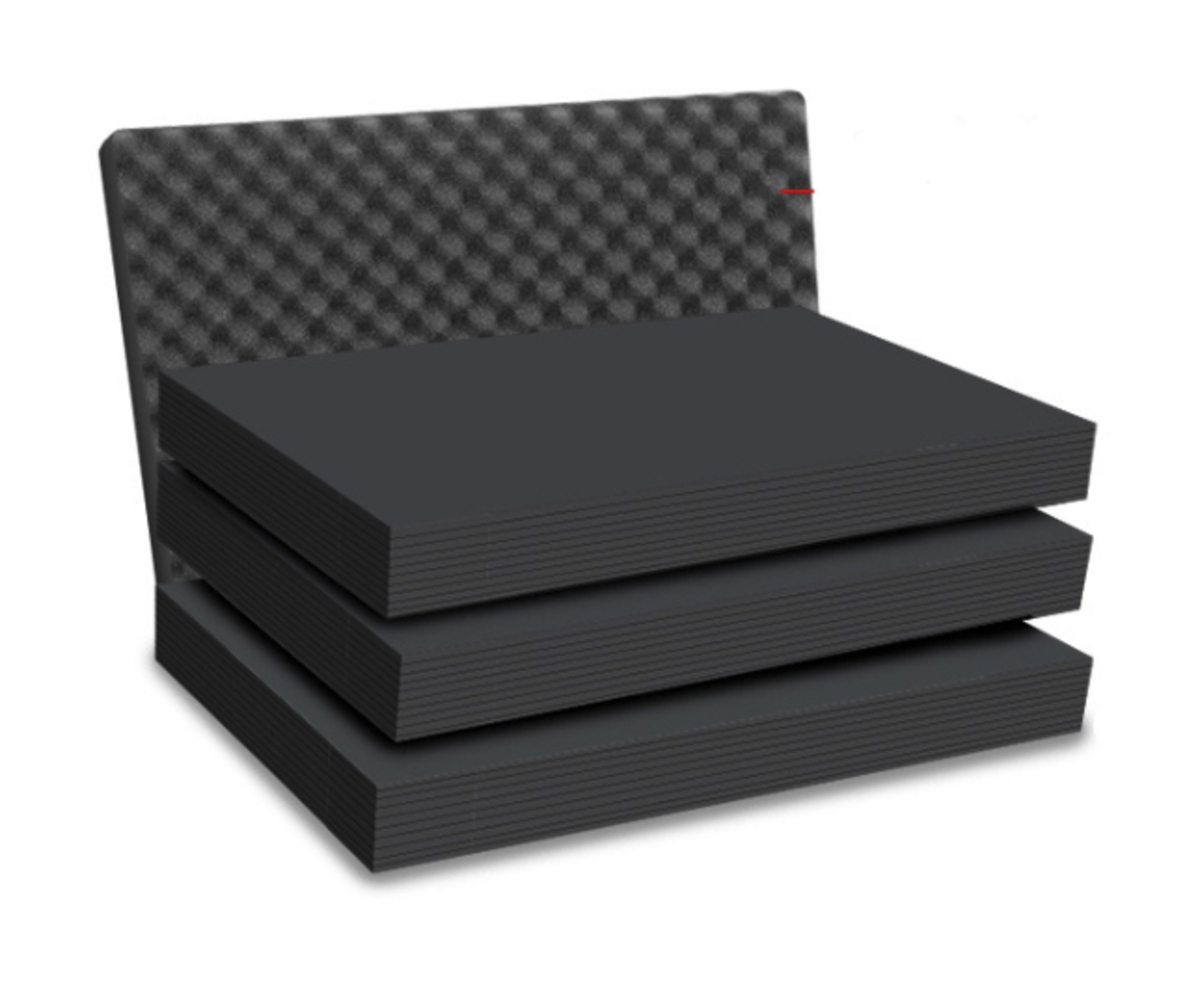 Multilayer Foam is an easy and professional way to organise and protect your equipment. All you need is a marker, a sharp knife, and your fingers. Multilayer Foam is a PE specialty foam that is pre-laminated in layers and can be easily cut and shaped to fit your equipment, tools, etc., precisely. Forget about troublesome pick-foam that crumbles, is soft, and can only be adjusted in squares, yet still falls apart after a short time. With multilayer foam, you get a medium-hard foam type that you can quickly customise to your equipment by cutting around it and simply peeling the foam to the depth you desire.
