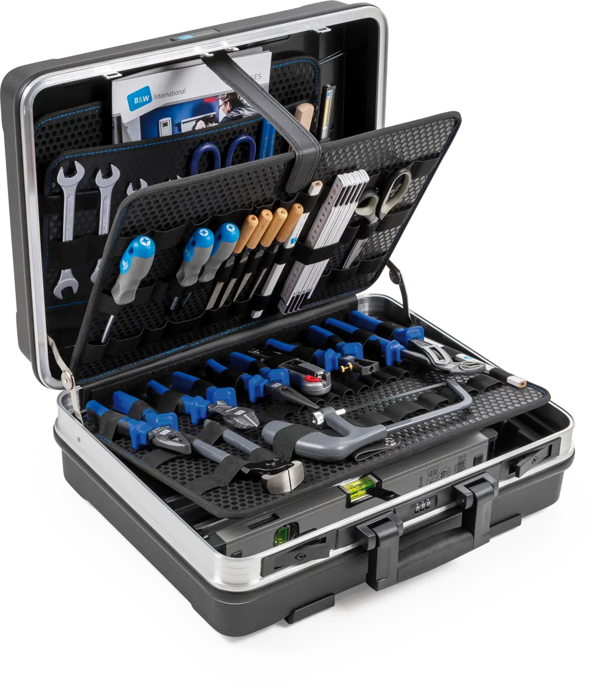 A case that really does it all: The shell, made of ultra rugged ABS plastic, withstands impacts and falls with ease. One special feature of the tool.case base is its four feet, which keep the case perfectly stable and prevent abrasions from uneven surfaces, preserving the case's classy, black design over the long term.