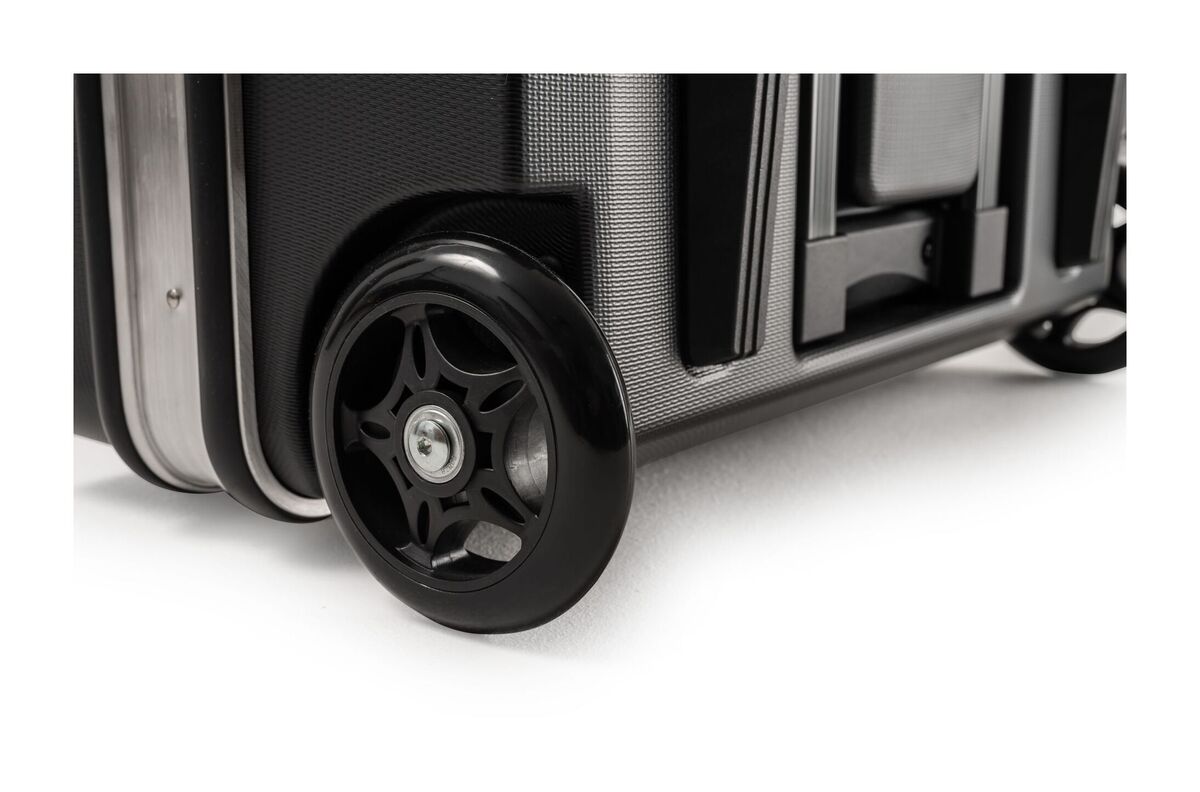 Our tool.case go XL - ABS.360.LPT offers 36 litres of space for all your tools and impresses with its outstanding mobility. The extra-large inline wheels run smoothly and quietly. The telescopic handle makes it easy to carry even when fully loaded. These features make it an unbeatable companion in any situation and for any job. The case's durable ABS body and aluminium frame with impact edge protection ensure that tool.case go XL can withstand even the toughest bumps and drops. 2 slide rails on the lower base rails make it easy to lift the tool case up onto kerbs.