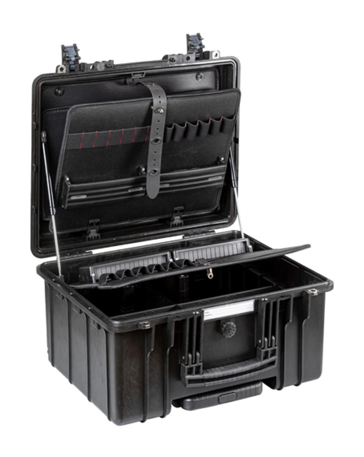 The base is equipped with high-stability modular dividers that allow adapting the internal space of the tool case according to the operational needs of the professional. - Easy transport on any surface.