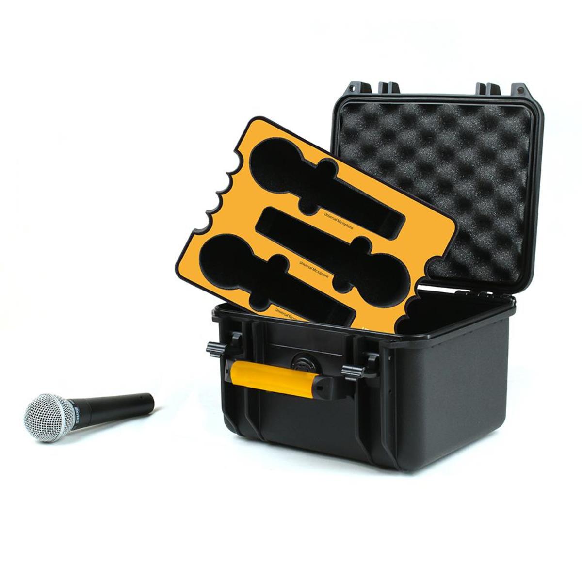 - Custom cut foam for up to 6 mics.
