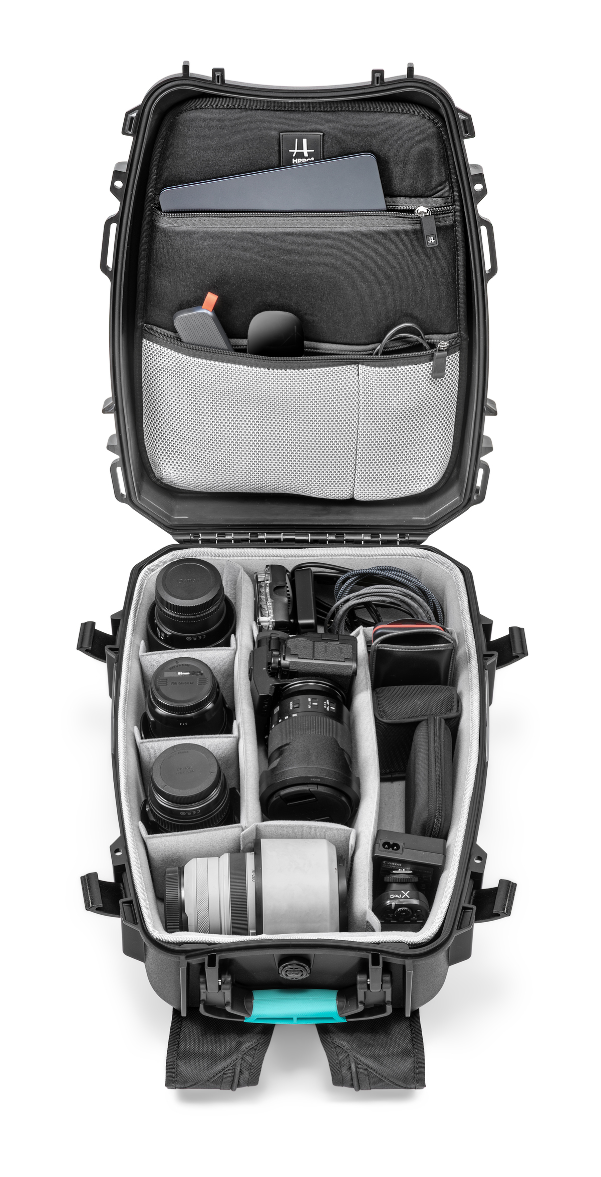HPRC#3600 PROBLB is a professional protective backpack engineered to safely transport sensitive equipment in demanding environments. It combines the durability of a hard protective structure with the mobility of a professional backpack system. Its TTX01® resin shell provides exceptional resistance to impacts, vibrations, dust and harsh environmental conditions. This PRO configuration integrates a custom Second Skin™ thermoformed interior together with a spacious organizer panel kit, allowing efficient storage and quick access to cables, batteries, tools and accessories. With IP67 certification, the backpack protects equipment against dust and temporary immersion, making it ideal for professionals requiring a reliable mobile transport solution. This configuration is widely used as a transport solution for camera equipment, drone gear, inspection tools and broadcast equipment in professional field operations.