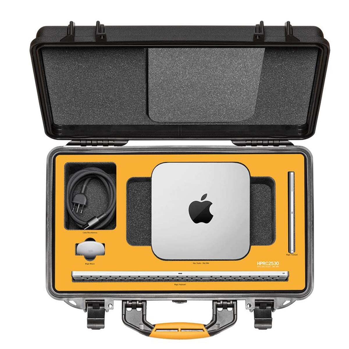 Watertight hard case – based on the HPRC2530 series – is specifically designed to protect and carry the Apple Mac Studio or Mac MIni and accessories, totally safe.