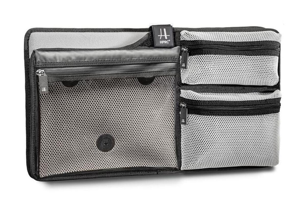Small items, cables, personal effects will find space inside the two pockets made of double-layer mesh with a diagonal weave that allows the passage of air, while retarding any water accidentally dropped when the case is open. The two layers are different, one more rigid the other more elastic for greater strength.