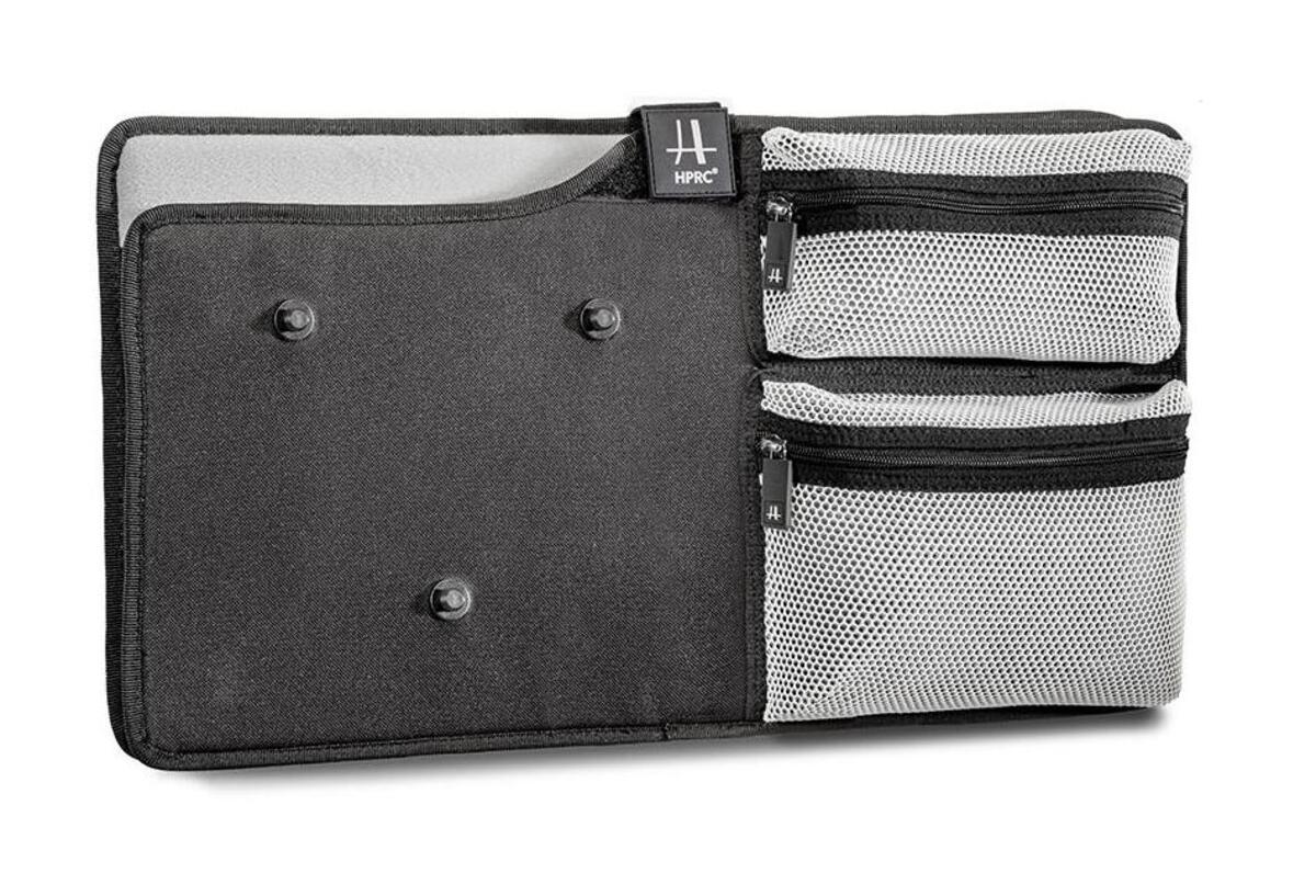 To attach the pouch, we have chosen the Fidlock® magnetic system: when attaching, the magnets are multi-directional, while to release it (and this secures it firmly to the case) they are one-way (pull upwards). No danger from credit cards or other material at risk of demagnetisation placed inside.