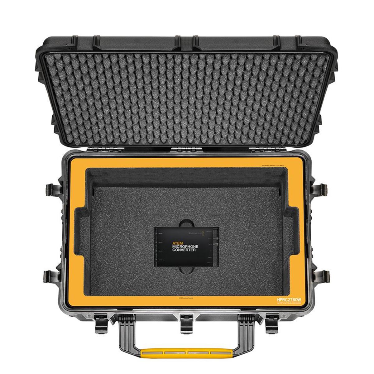 This lightweight, impact-resistant and watertight resin case, HPRC2760W, is specifically designed to carry your ATEM Television Studio 4K8 / HD8 / HD8 and Microphone Converter.