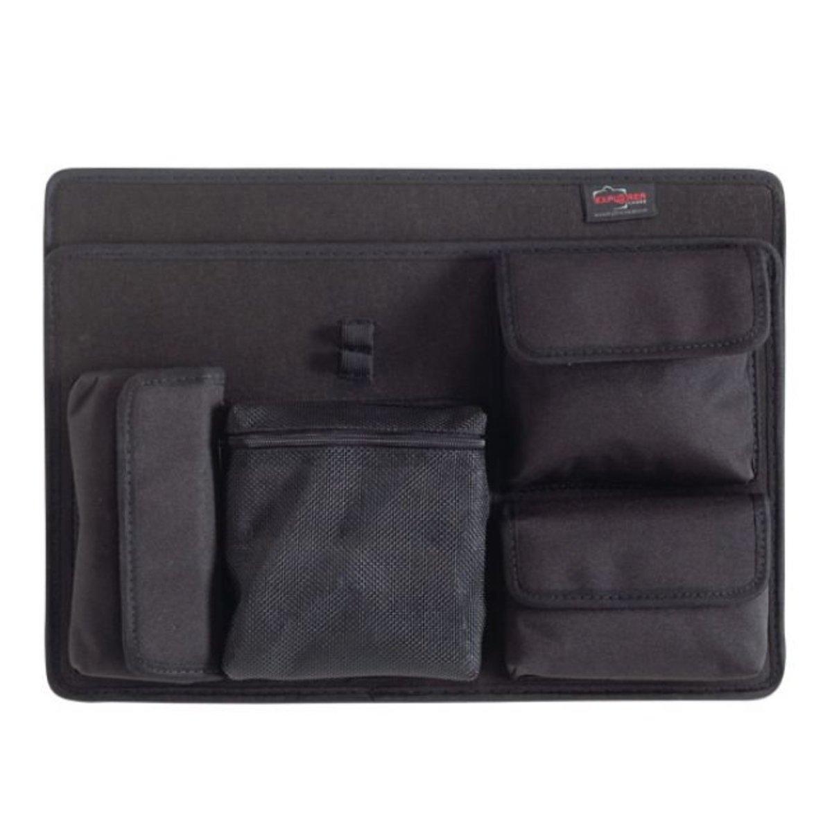 Practical and robust lid panel with pouches, ideal for small accessories and documents.
