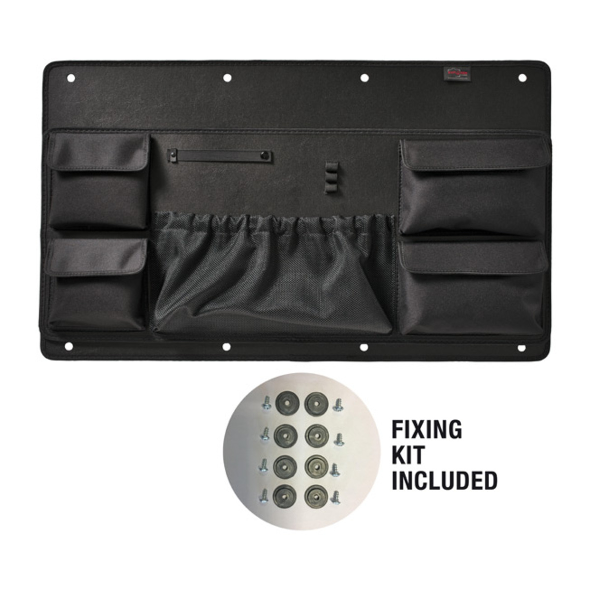 Practical and robust lid panel with pouches, ideal for small accessories and documents.