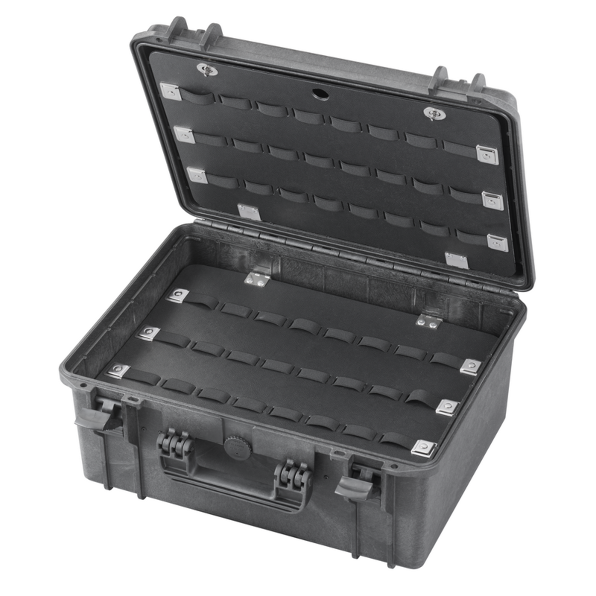 Watertight case to trasport and protect fragile and valuable objects. Tool storage panels to better organize your professional instruments.