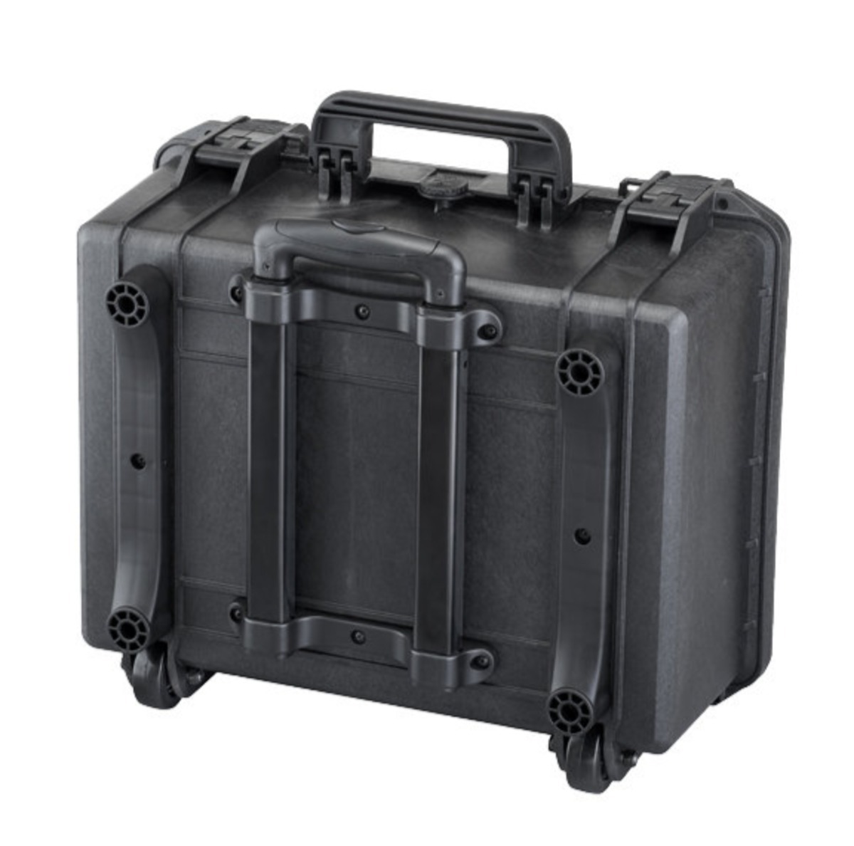 Watertight case to trasport and protect fragile and valuable objects. Tool storage panels to better organize your professional instruments. Trolley and wheels for transport.