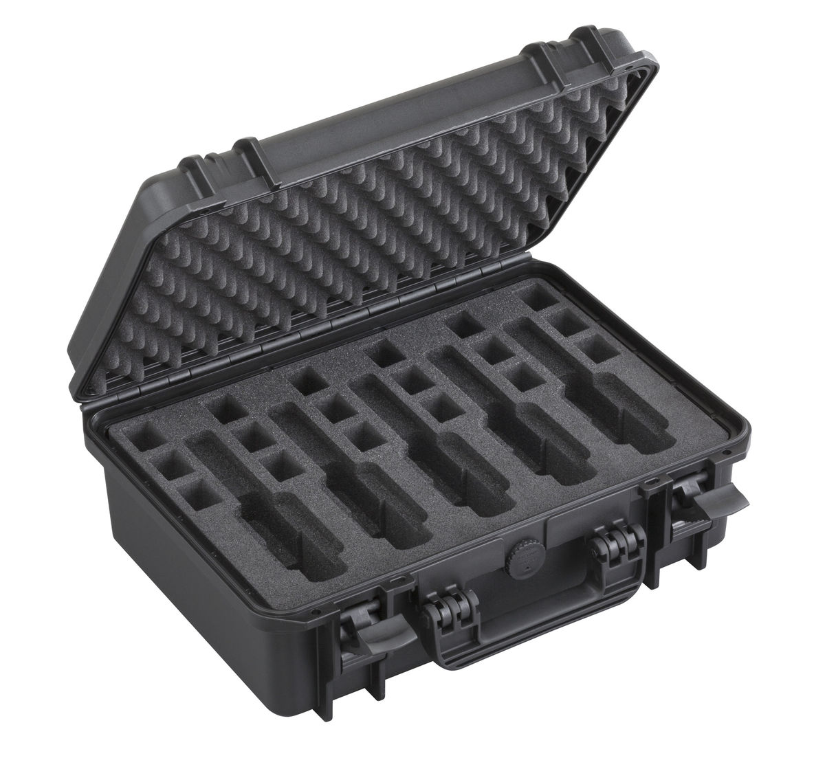 MAX430 waterproof case with special foam interior for carrying and protecting any semi-automatic pistol and revolver up to 15 cm barrel length. Can hold up to 5 guns and 18 magazines