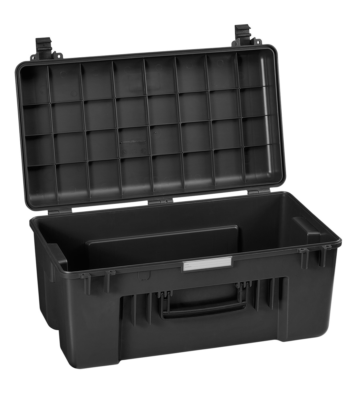 Lightweight high capacity injection moulded polypropylene box for tough, heavy duty use. Ideal for use where high loading capacity is needed like construction sites, maintenance, transport, outdoor and nautical equipment.