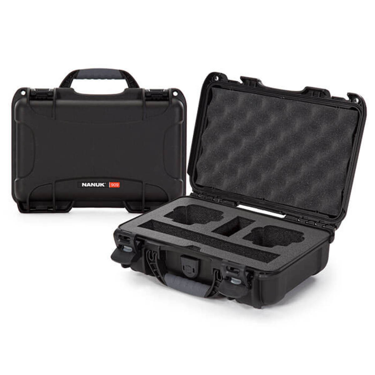 The NANUK 909 for DJI™ Osmo Action Case is designed to offer compartmentalized protection for the DJI™ Osmo Action camera and its accessories.The interior of the case contains a foam-lined lid, and is comprised of pre-cut foam that will securely hold 2 Osmo Action cameras with protective housing and mounting screw. Additional compartments are available for storing important accessories such as multiple batteries, USB cables, a charging hub and more.
