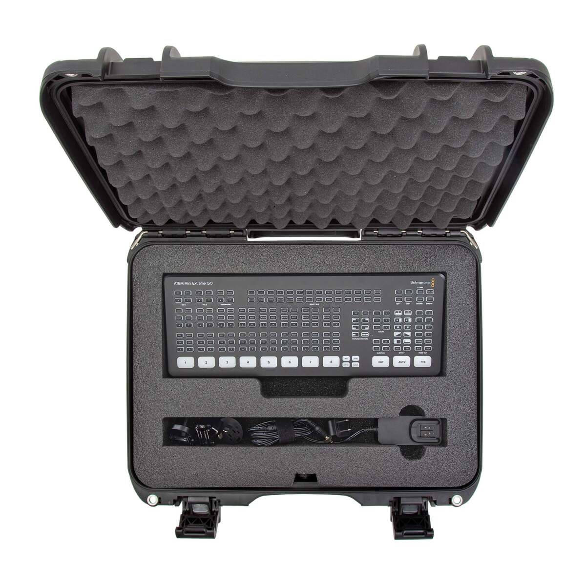 The maximum level of protection for Blackmagic Design ATEM Mini Extreme ISO, charger and accessories in a protective case and custom-designed foam.