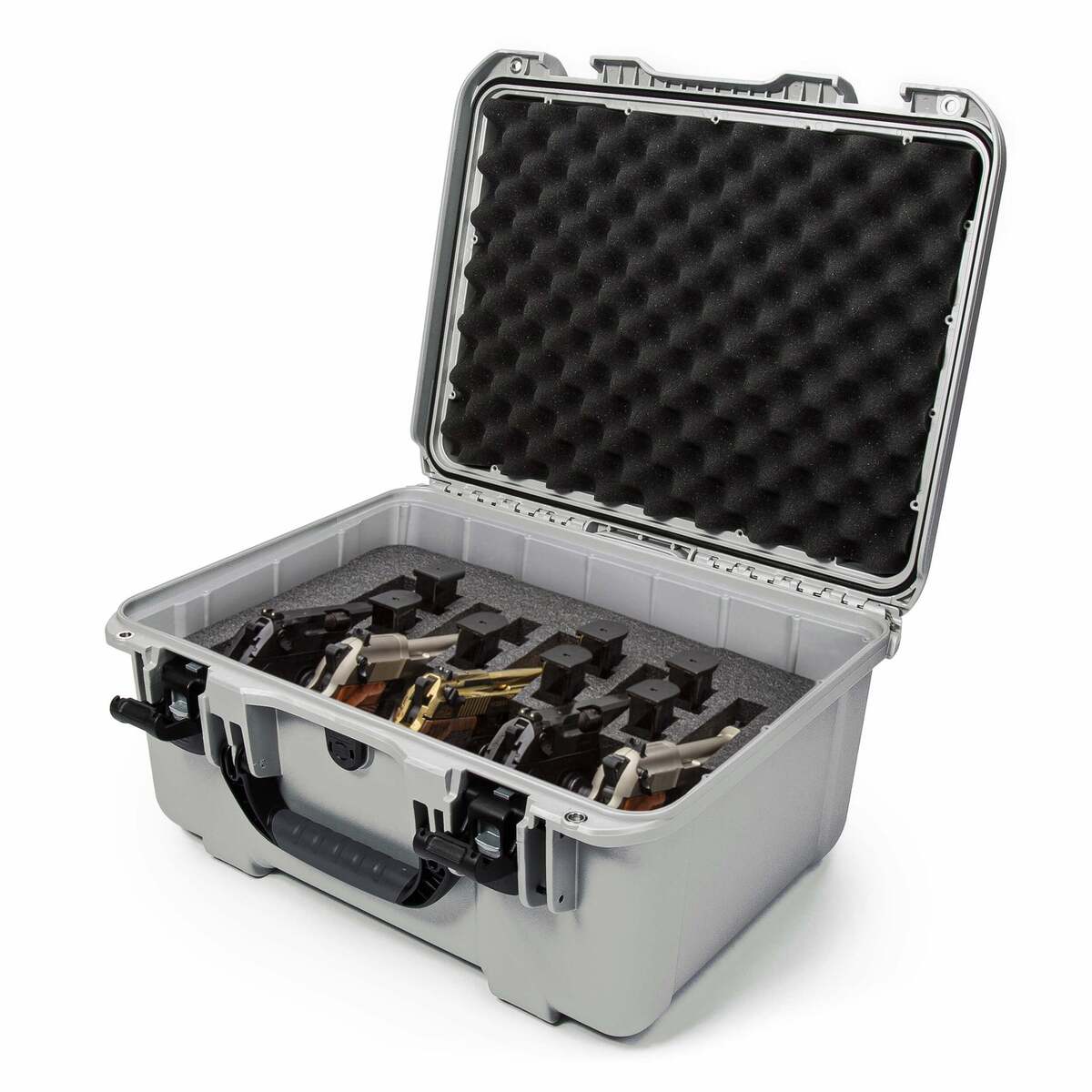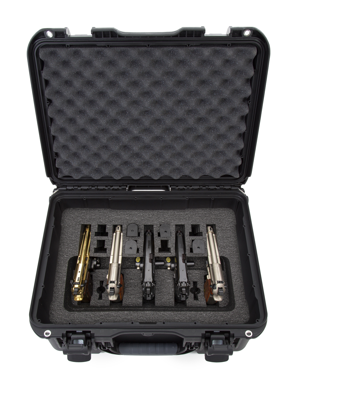 The NANUK 933 5 UP Pistol Case provides secure storage for up to 5 full-frame handguns with trigger locks and 8 magazines and meets the storage standards and regulations for firearms. This hard case fits all pistols with barrel lengths up to 5", adds extra depth to accept 1911 style or any customized handguns and accommodates the weapons with their trigger locks in place.