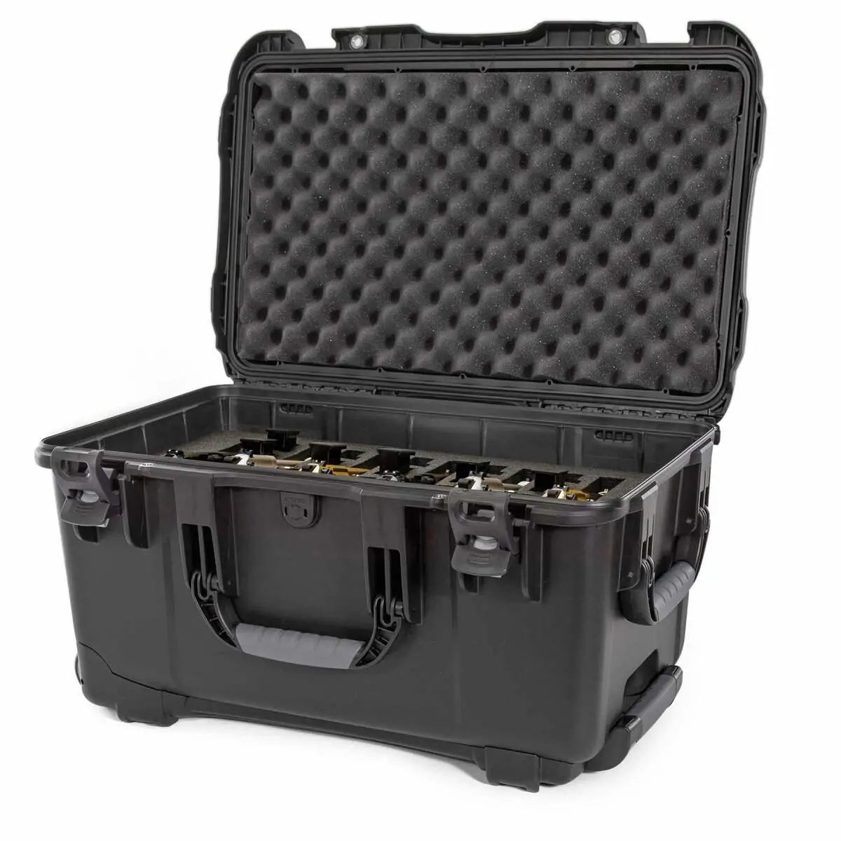 Designed for law enforcement agencies, military, shooting instructors, shooting clubs and schools, industry representatives, consultants, gun dealers and collectors/enthusiasts, this case features semi-rigid and highly-resistant closed cell Synergy® PEF foam for long term performance. The NANUK 938 6 UP Pistol Case has a lifetime guarantee and is waterproof, dustproof and indestructible. With two (2) reinforced eyelets to accommodate locks, you can organize, protect and carry your handguns with confidence. Our smooth ball-bearing-sealed polyurethane wheels and our 2-stage retractable handle makes transportation easy and convenient. A TSA retro-fit latch kit is easy to install and adds an extra measure of security when traveling.