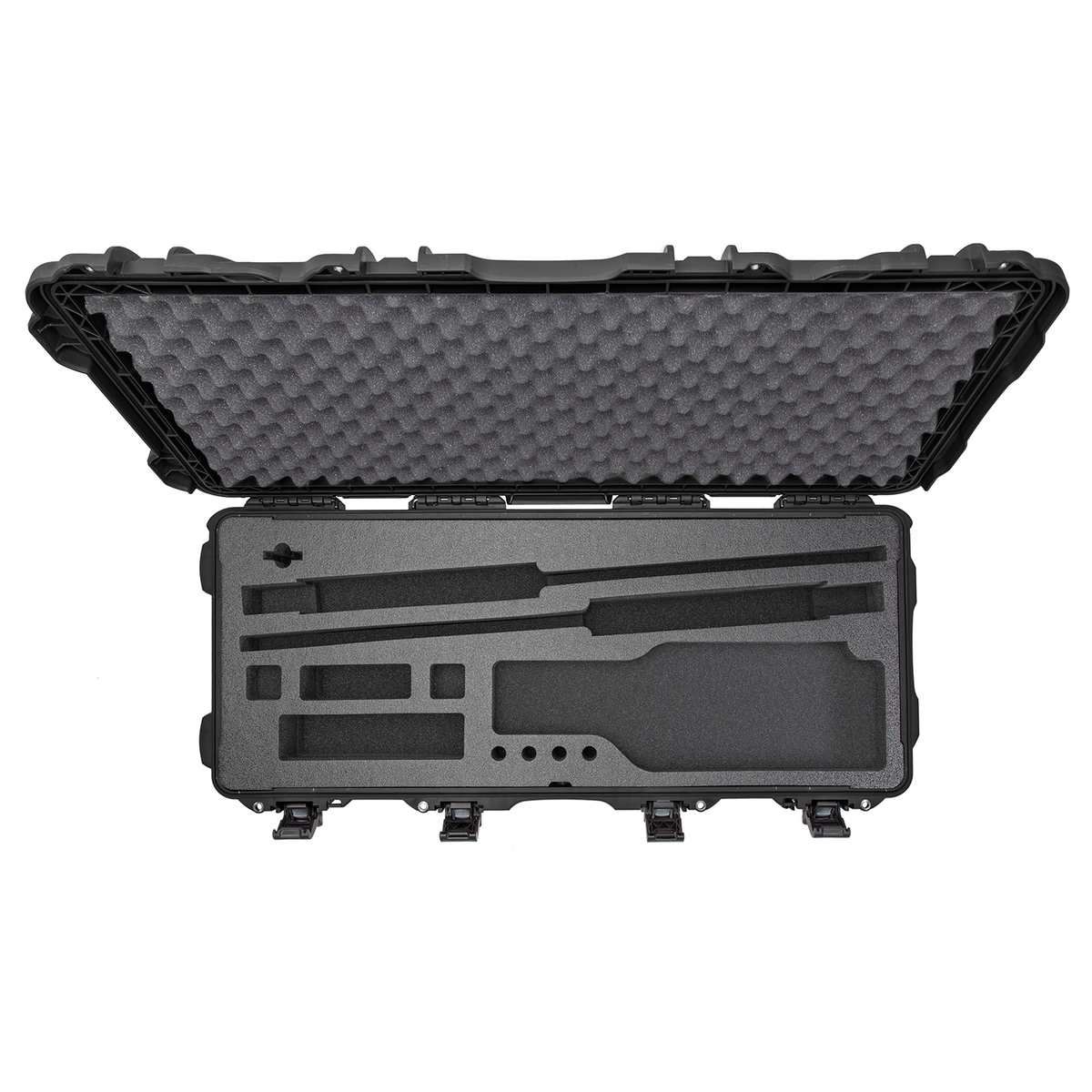 The foam insert also features storage areas to accommodate popular accessories and a dedicated slot for a desiccant cannister. Equipped with two TSA accepted locking latches and polyurethane wheels, the 985 TAKEDOWN case will protect and transport your Shotgun in complete security.