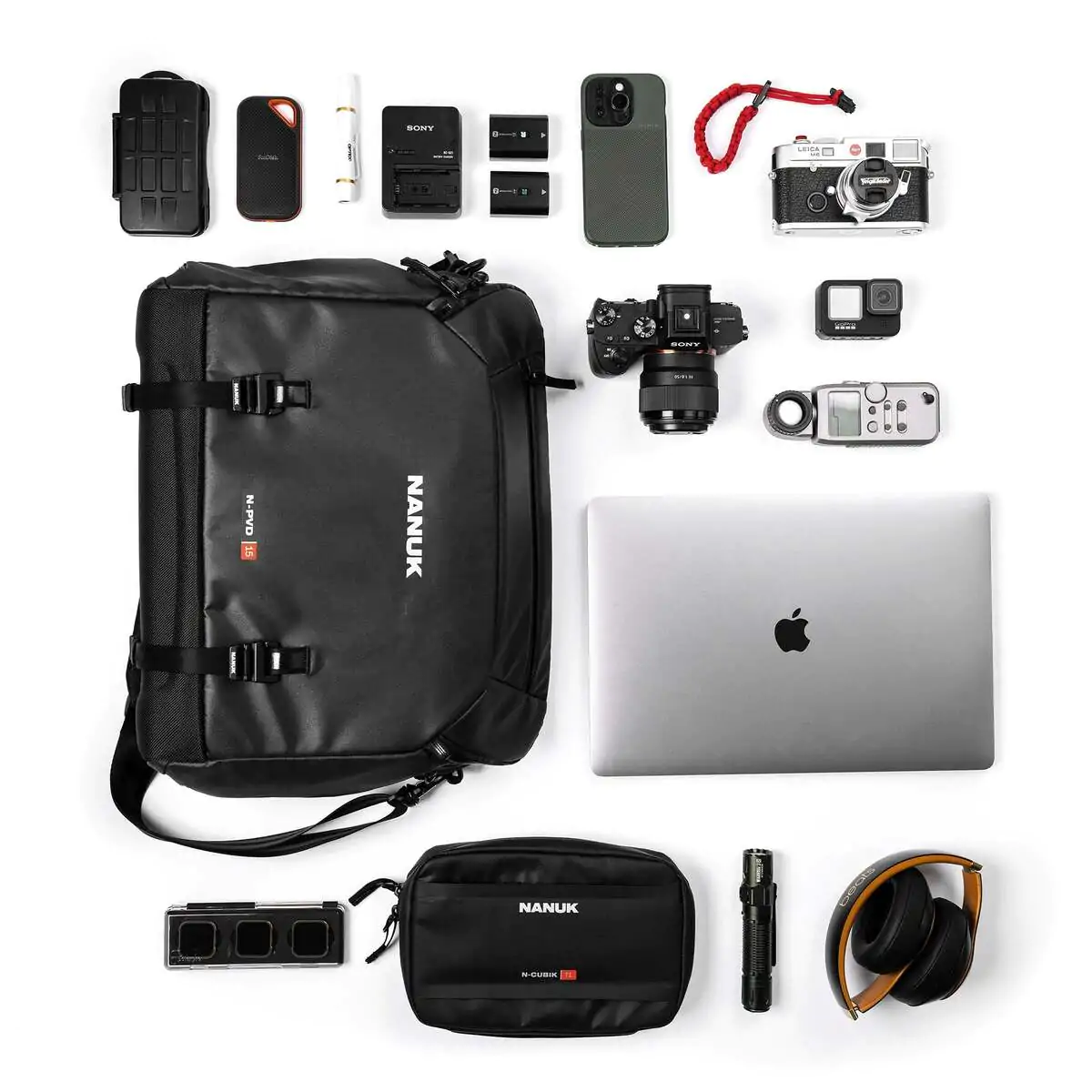 For optimal and customizable organization, this camera and drone bag comes with padded dividers that are easy to adjust and secure, thanks to the tri-base attachment points. The N-PVD 18L is also protected by a dust and water cover.