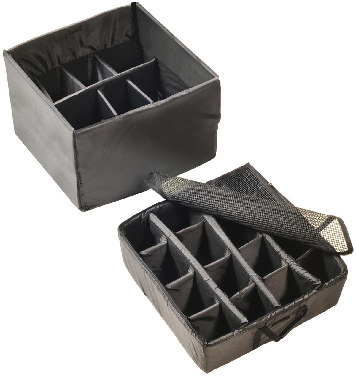 A two piece padded nylon system incorporating a shell with padded nylon dividers with Velcro ends, enabling flexible and changeable configuration of internal compartments. The Peli 0350 Padded Divider Set is made to organize small and large items. The dividers are made from ballistic nylon and are padded and flexible. The Peli Padded dividers are the best way to protect eqipment in your Peli case. They are versatile, and are extremely well made from lycra type cloth covered foam pads with verco fastenings. Put your equipment in the Peli case and push the Peli Padded Dividers around to keep it in place. When your Peli case is being used with many products this is the best option for securely holding your equipment.