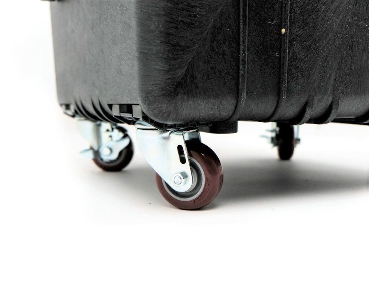 The PELI™ 0350 top-loader, like all Peli Cases is unbreakable, watertight, airtight, dustproof, chemical resistant and corrosion proof. The case has large handles and also a spring loaded Pull Handle. Wheels are an optional extra if needed.