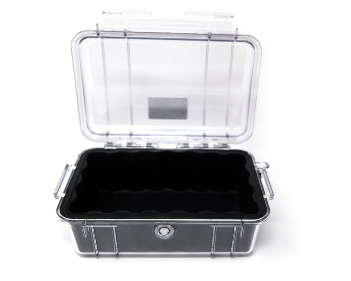 Each Peli 1050 Micro Case is available in a choice of solid colors or a clear lid with a matching liner and a speed lock system for secure closure. They also include a removable carabiner for easy attachment, making them ideal for outdoor activities, travel, or daily use.