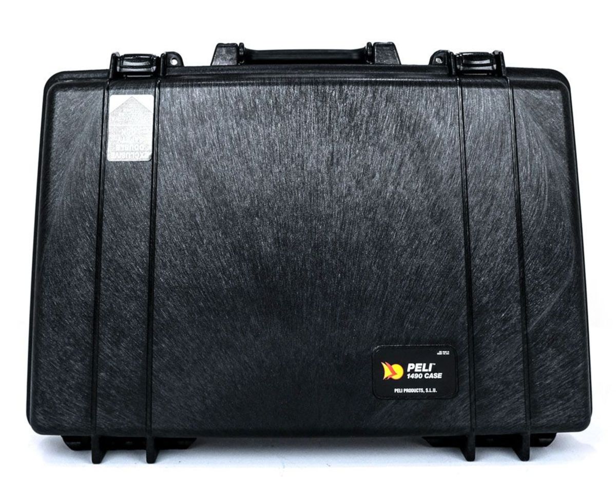 Like all Peli Protector Equipment Cases, the new Peli 1490 Case is watertight, dust proof, crush proof, and corrosion proof. The Peli 1490 Case is molded of advanced ultra high impact copolymer resin, protects valuable laptop computers from handling abuse and all weather conditions. The model includes a keyed locking latches, atmospheric purge valve, o-ring seal and fold down handle.