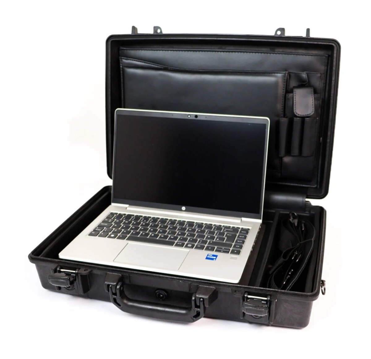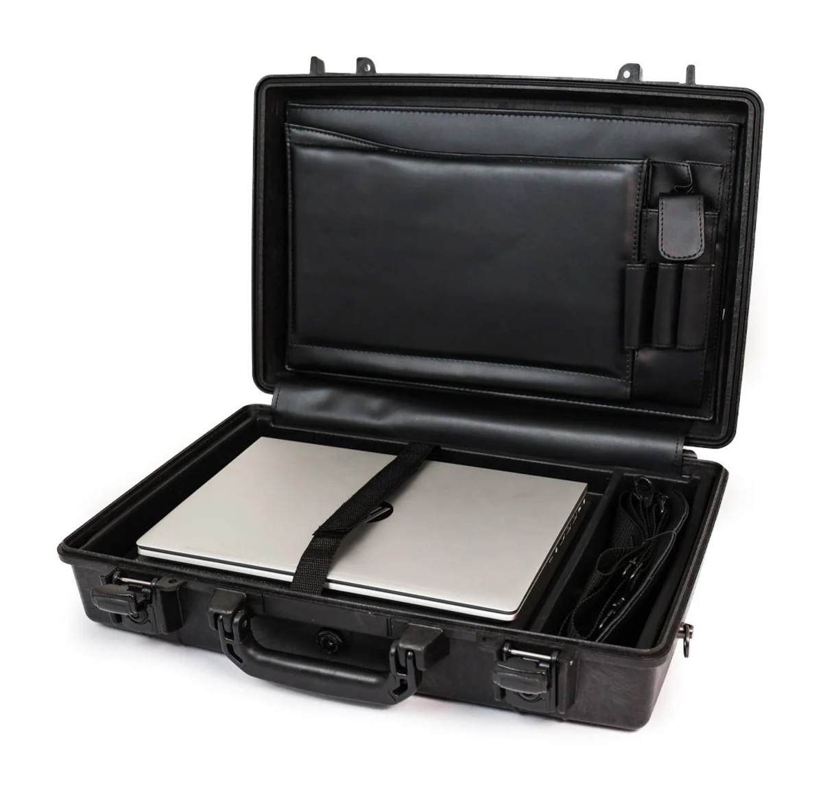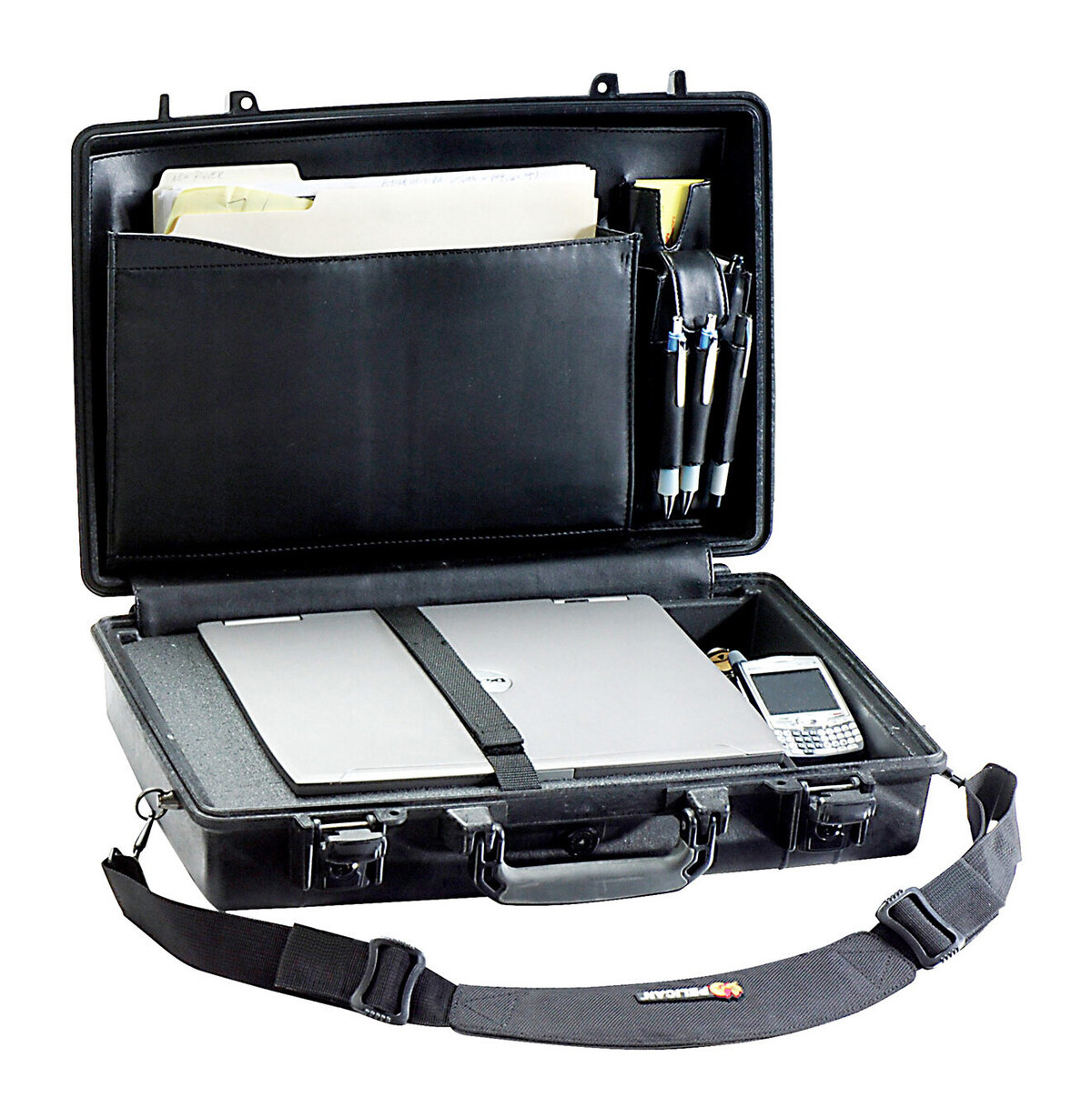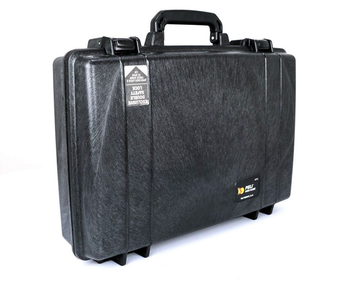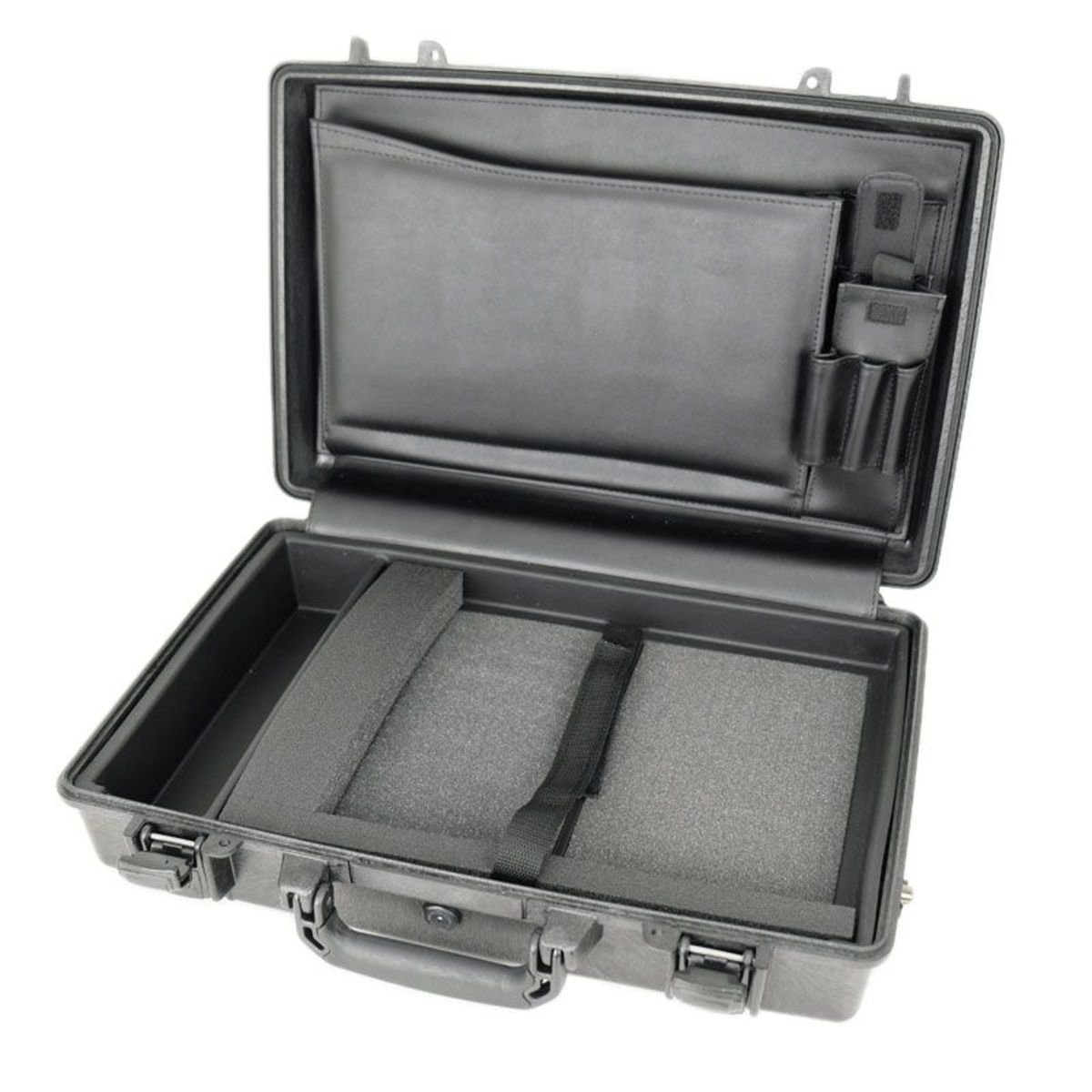 Peli 1490 with added lid organiser, shock absorbing tray and shoulder strap. Waterproof, crushproof and dustproof.