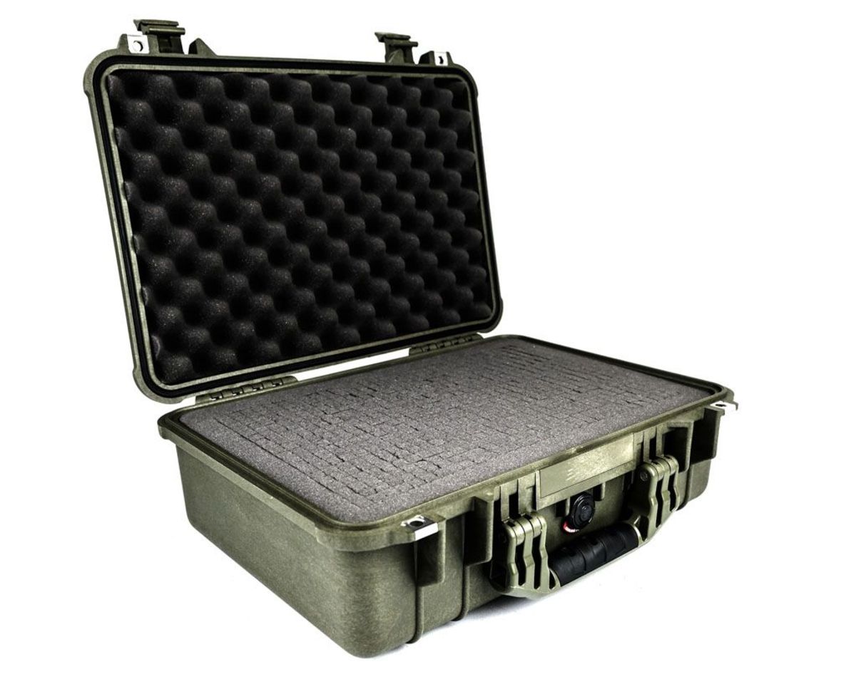The Peli 1500 is very popular within the Medium Sized Case Range. This case can be empty or for superb protection you can use the Peli Foam set . This Peli Foam consists of Corrugated Lid Foam , 1 x thin layer as the bottom base foam and then one large Pick and Pluck foam set filling the rest of the Case. With Pick and Pluck foam you can easily cut it with a knife or just pull the pre scored cubes out by hand.