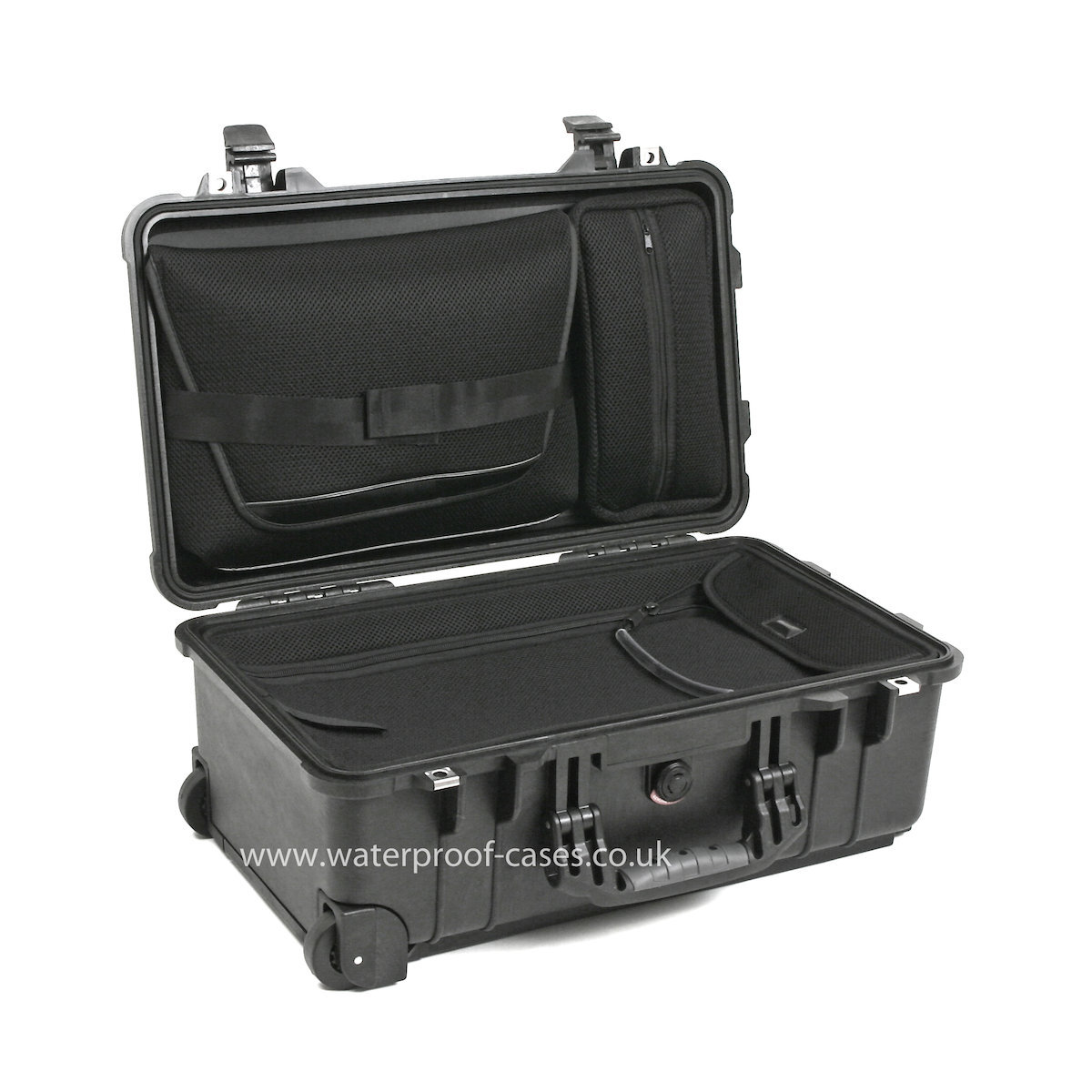 This Peli 1510 LOC Laptop Overnight Case is Watertight, crushproof, and dust proof.It has a retractable extension handle ,Strong polyurethane wheels with stainless steel bearings,Easy open Double Throw latches ,