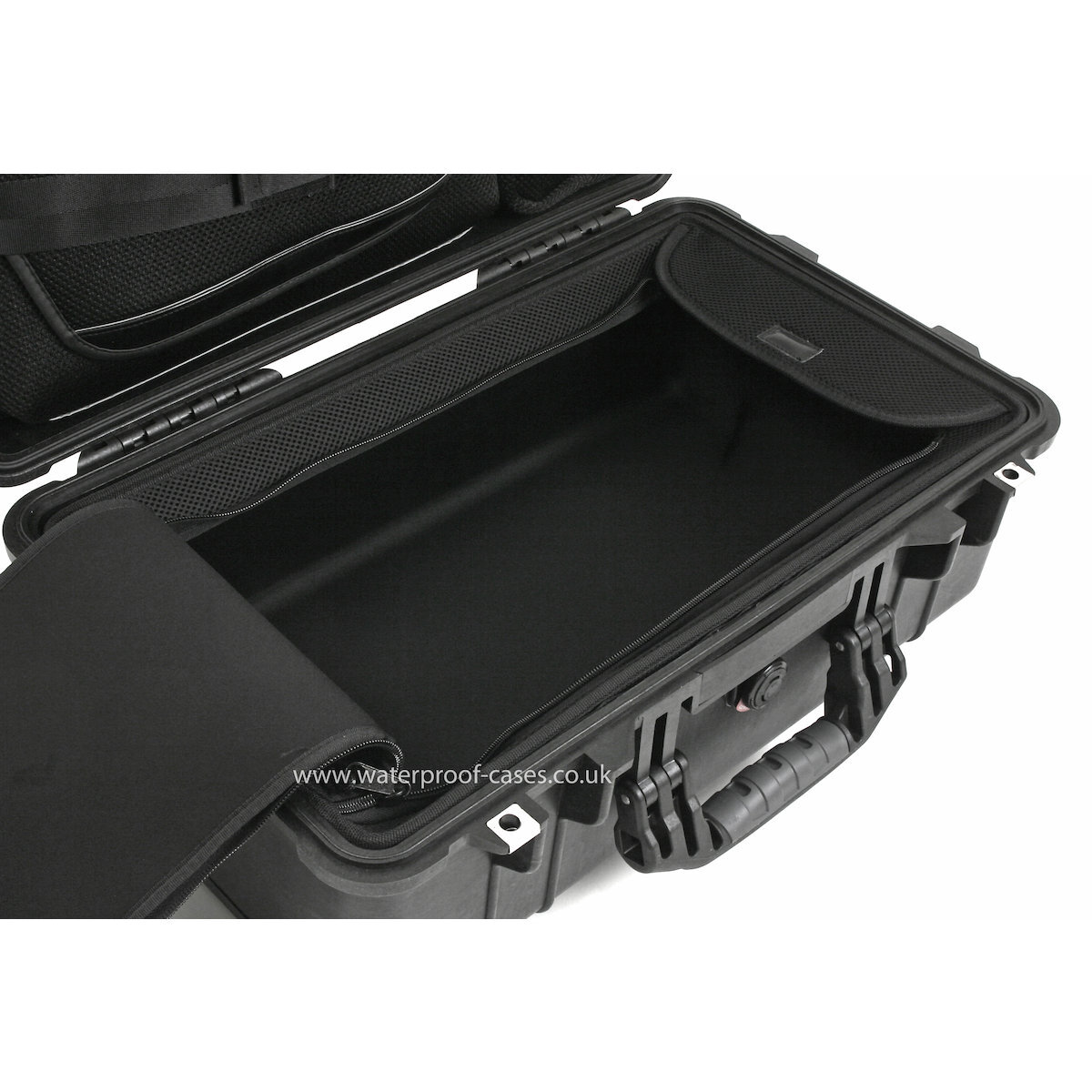 PELI 1510 LOC Laptop Overnight Case consists of a Detachable Computer Sleeve for up to 14.4 inches and Accessories pouch in the Lid, and in the base is a large Zip able Pouch to accommodate clothes or other items for short trips.
