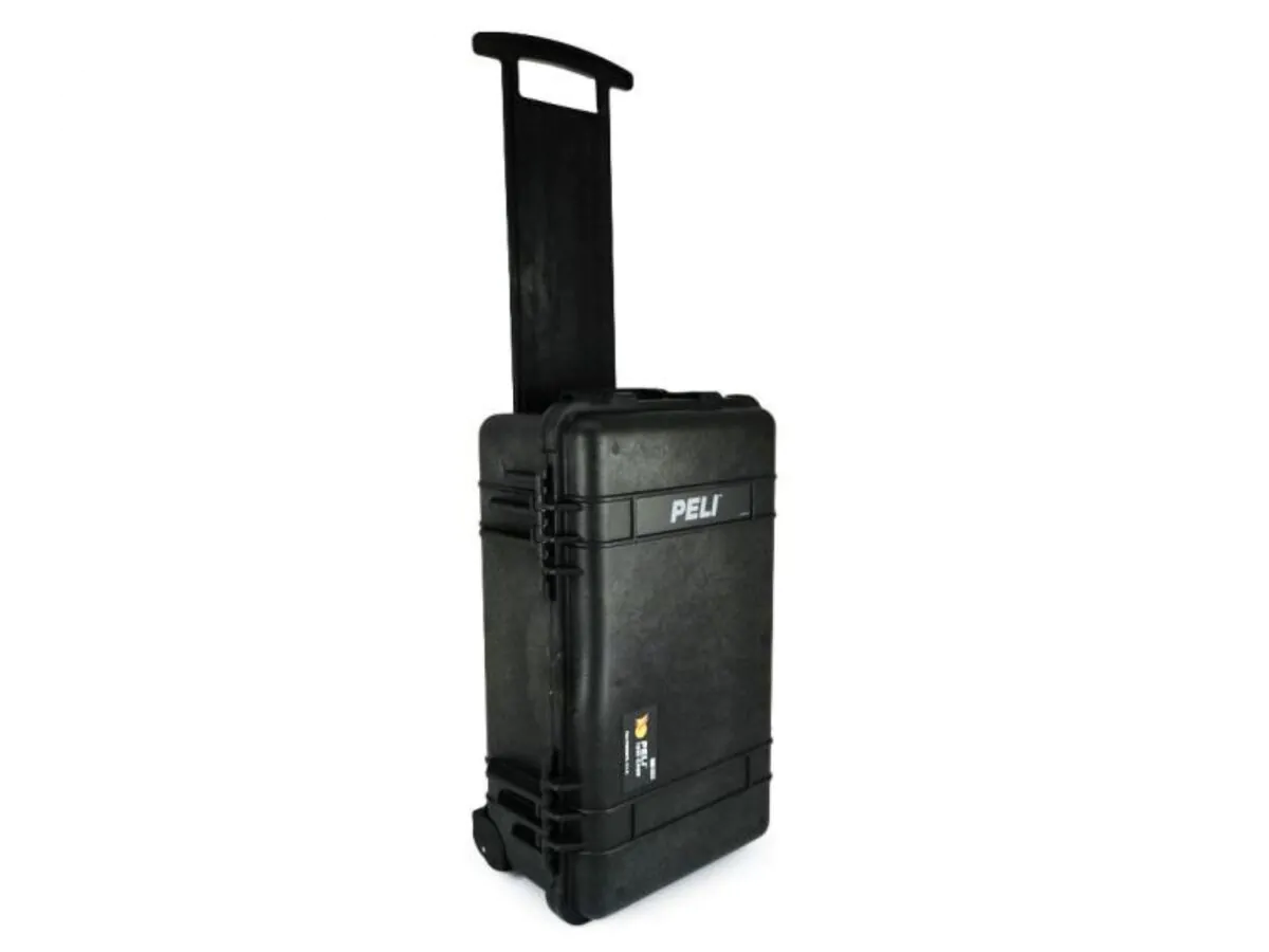 The Peli 1510 is made of ultra-high impact copolymer polypropylene, providing strength and performance against extreme conditions, rough handling, dust, and water. It comes with a new effortless-release extendable handle, rugged wheels, “double step latches,” metal-reinforced padlock protectors, Peli’s patented O-ring sealing system, and an automatic pressure relief valve that ensures the air pressure inside the case equalizes automatically at high altitudes.