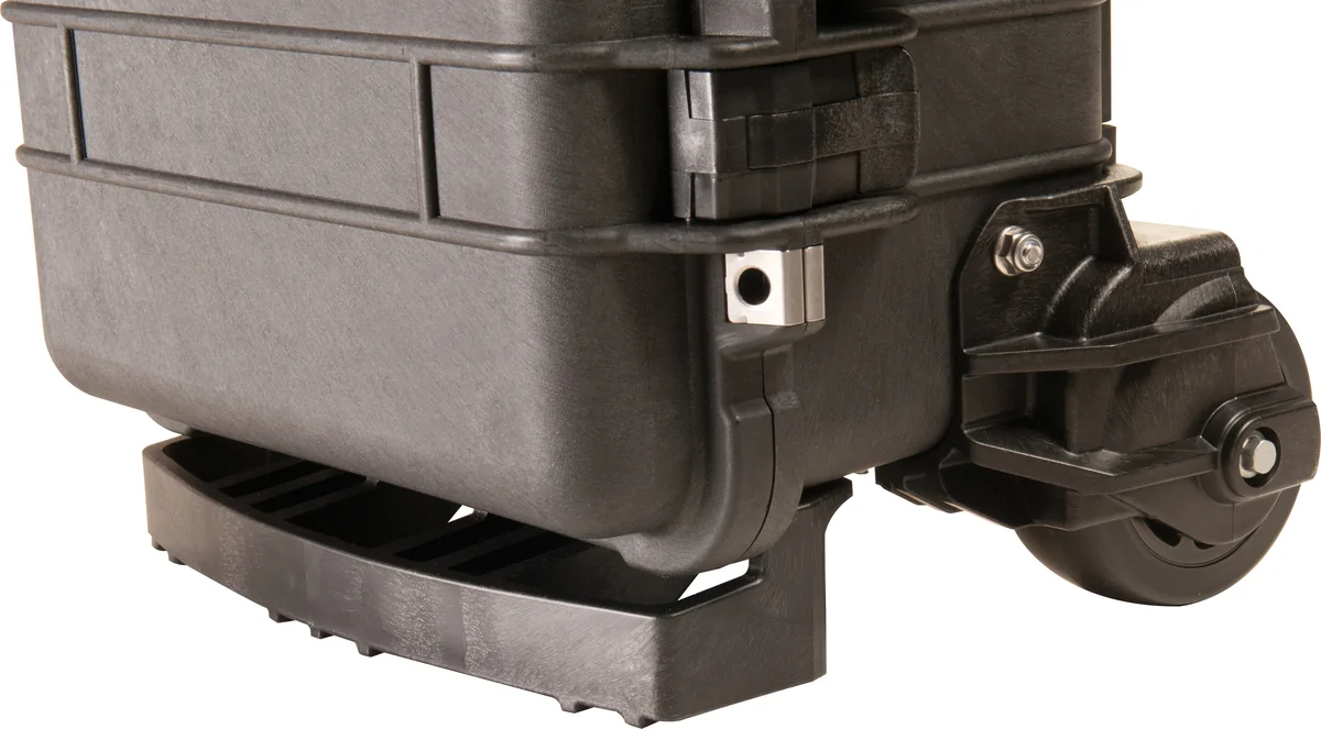 The 1510 Mobility Case is all-terrain it comes with larger heavy duty polyurethane wheels with stainless steel bearings and a stability block at the base