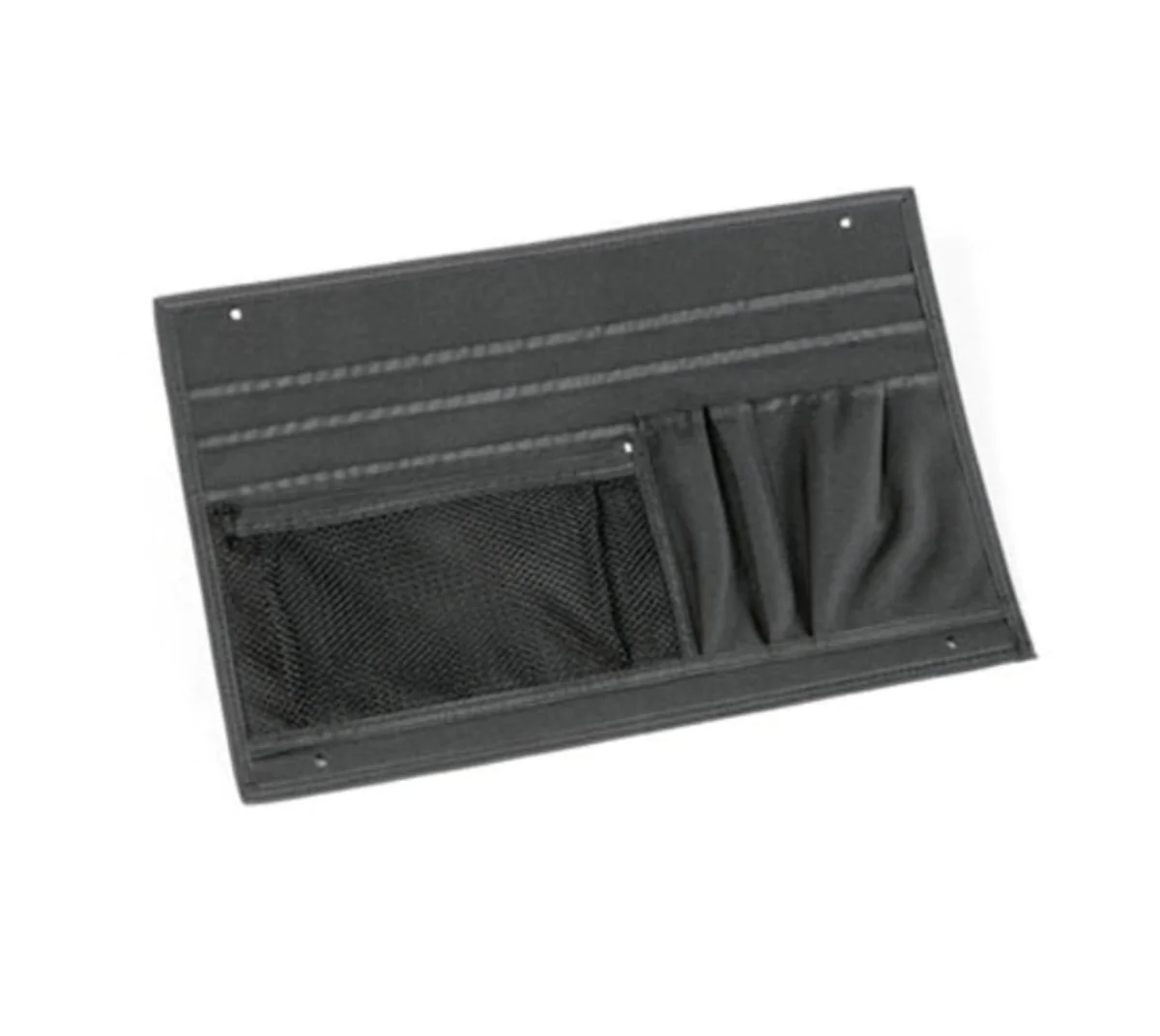 Comes with Velcro strips with adhesive along both long edges to fix the lid organiser into the case.