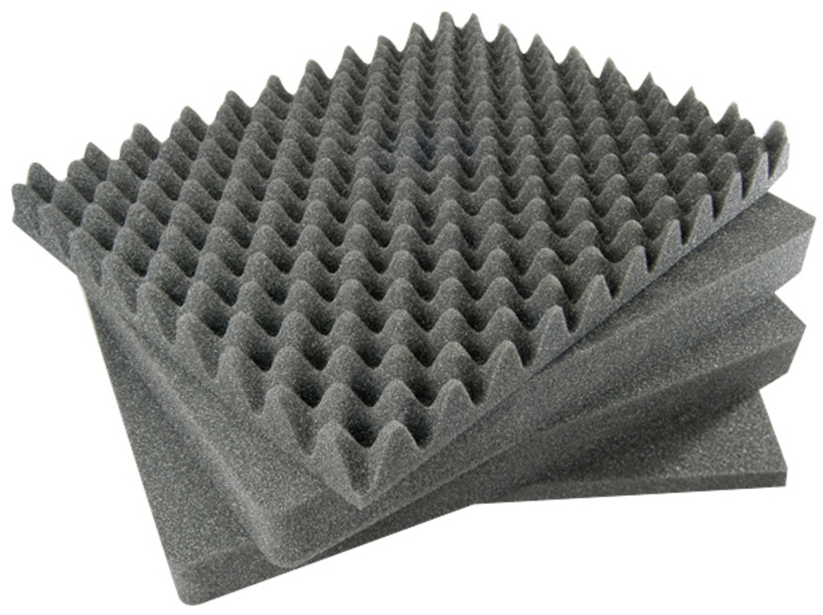 The foam set is an easy do-it-yourself system for customizing the interior of your case. Layers of foam are pre-scored in tiny cubes. Simply lay your equipment on the foam, tape or chalk to mark the foam, and pluck away. Always allow at least one inch of foam between your equipment and the wall of the case.