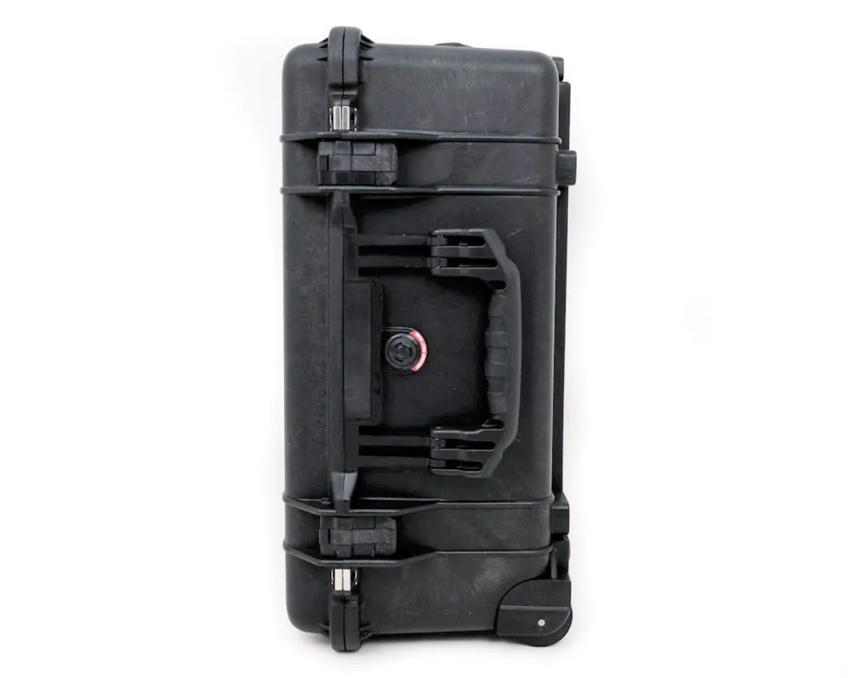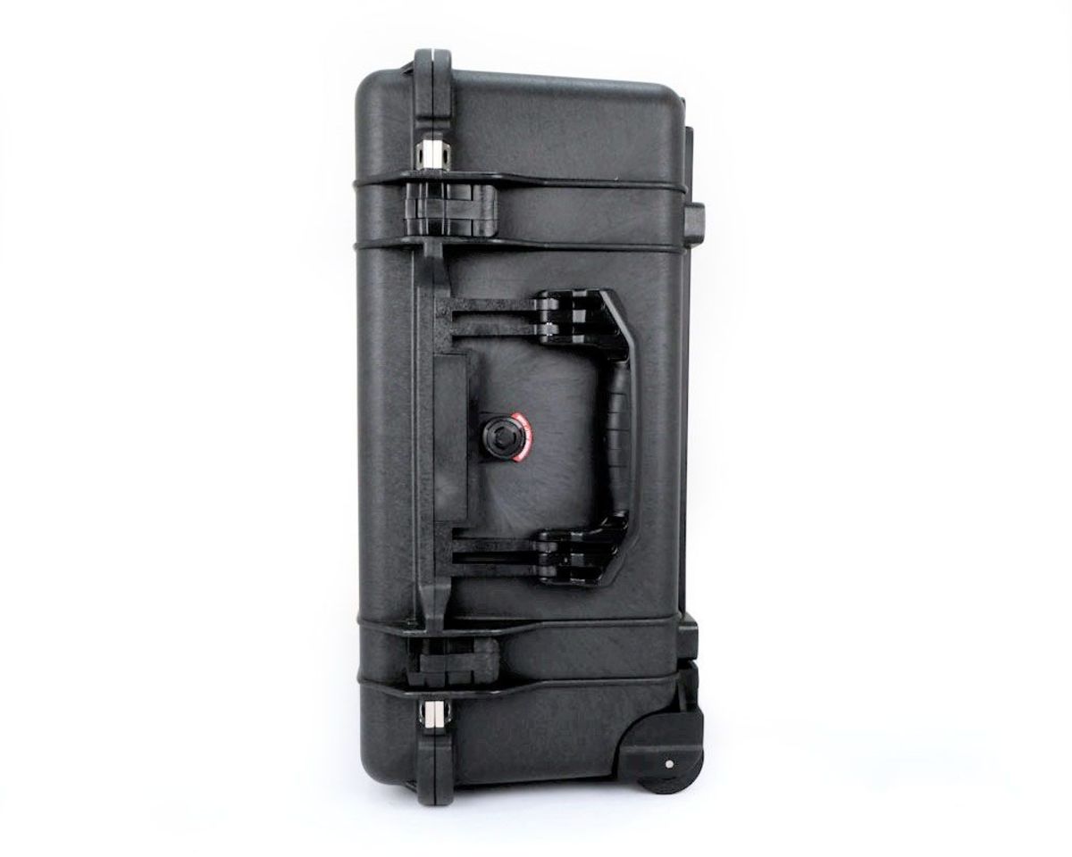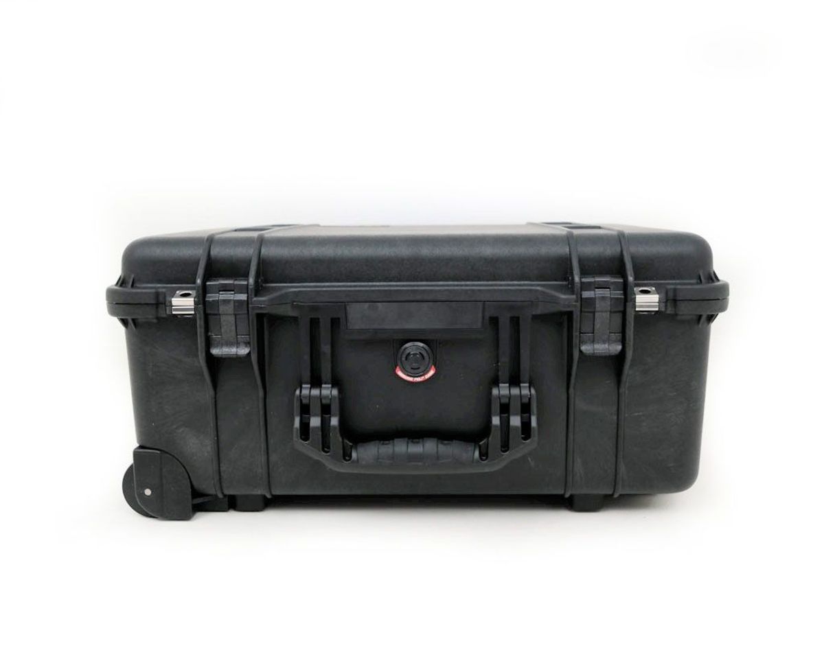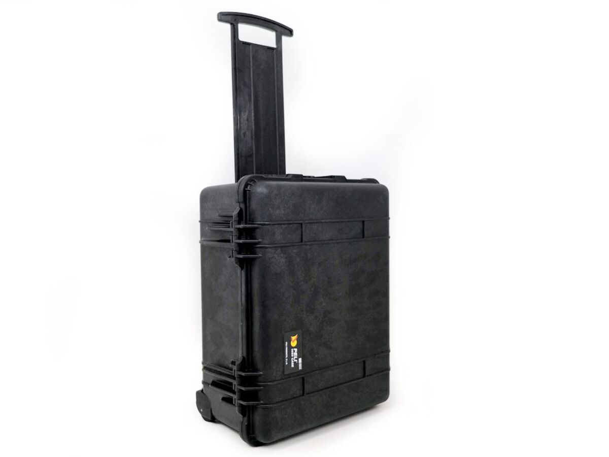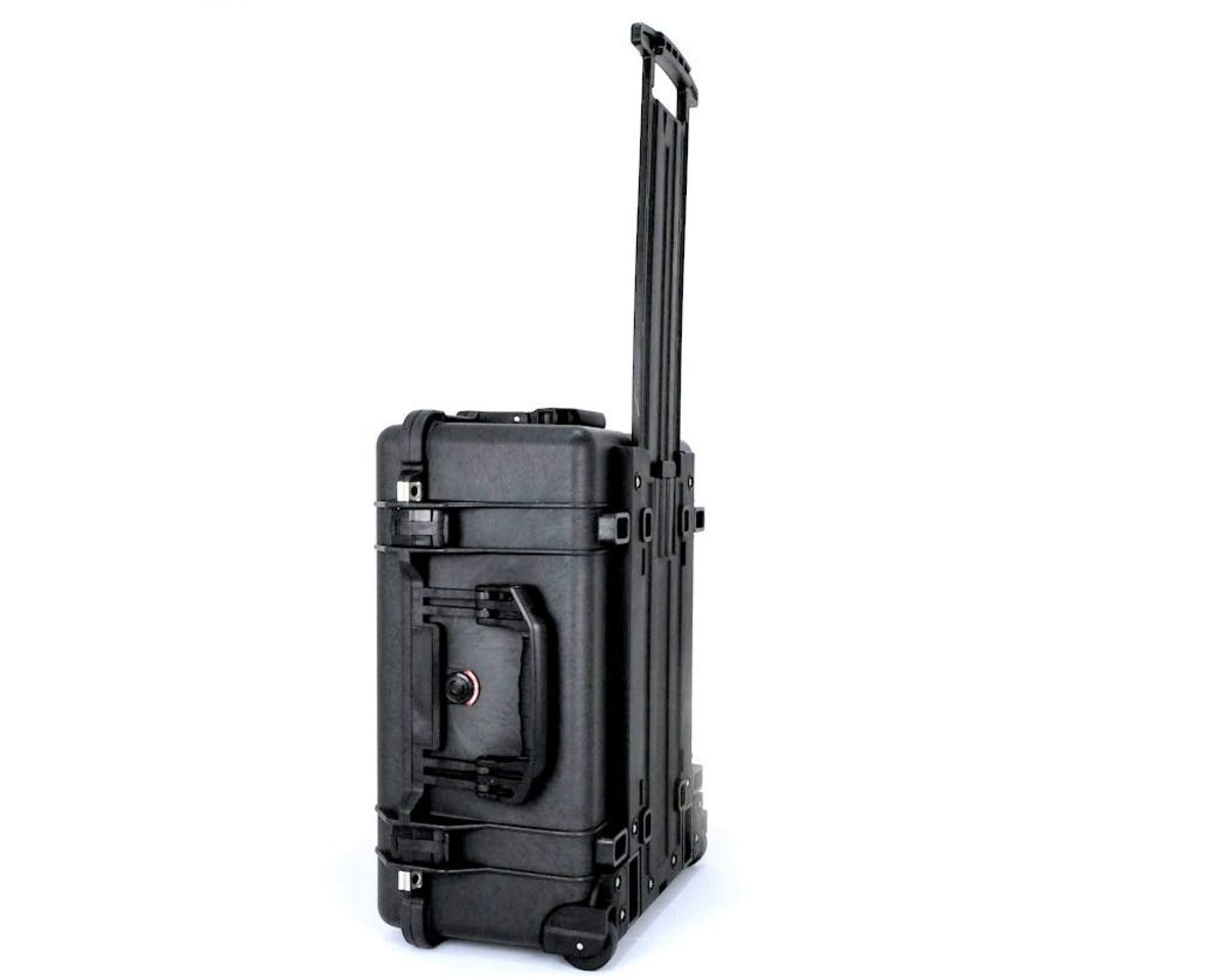 The Peli 1560 comes with wheels and a retractable handle in the following colors: Black, Tan, Olive, and Orange. They are unbreakable, watertight, airtight, and chemical/corrosion-proof as they are made from an ultra high-impact structural copolymer complete with an O-ring forming a watertight seal but with an automatic purge valve for pressure equalization (essential for air travel). It also protects against rough handling, dust, and water, and carries the legendary "you break it, we replace it" lifetime guarantee.