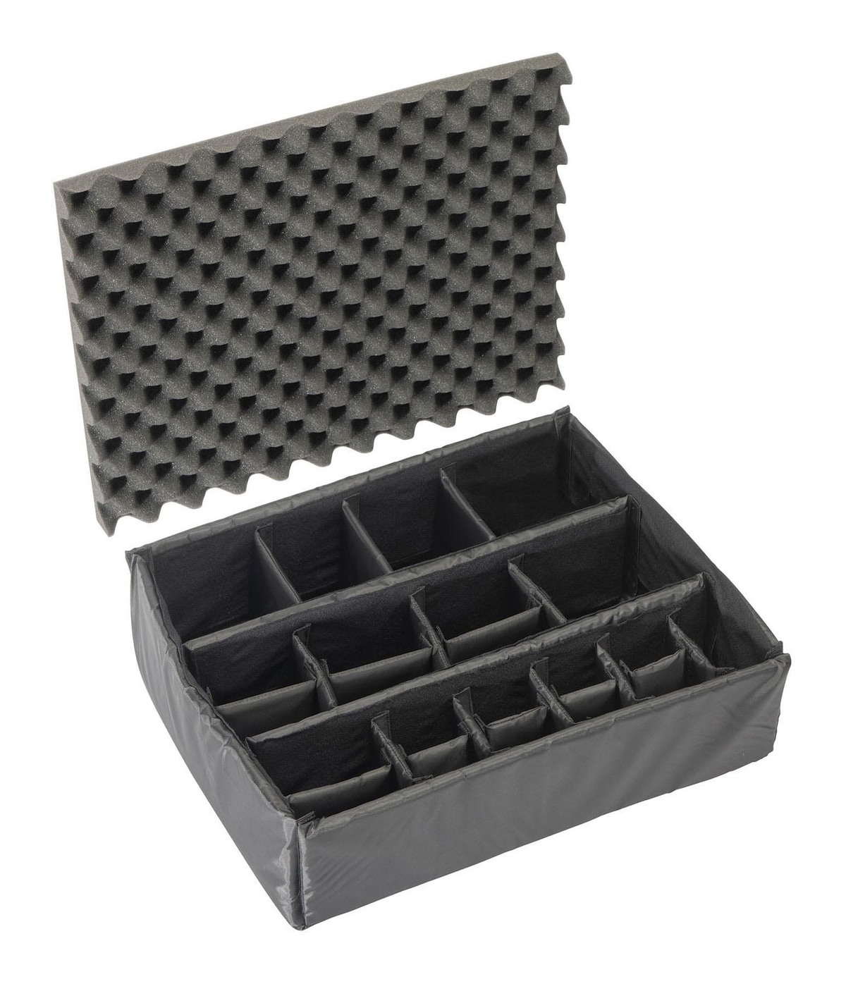 Padded divider set for the Peli 1510 case. Features a nylon-fabric-covered padded foam tray with various removable padded dividers, these dividers feature Velcro at the ends to attach to the walls of the tray and each other.