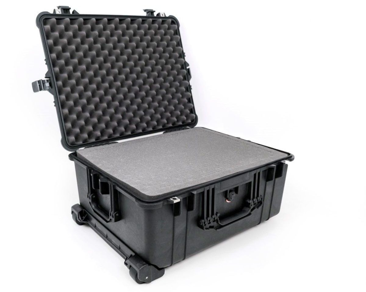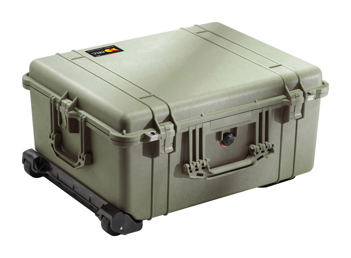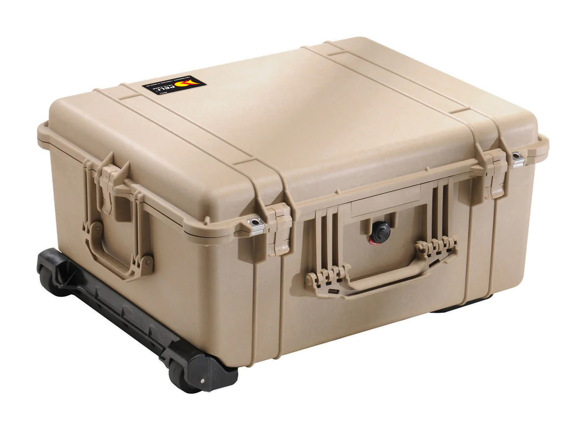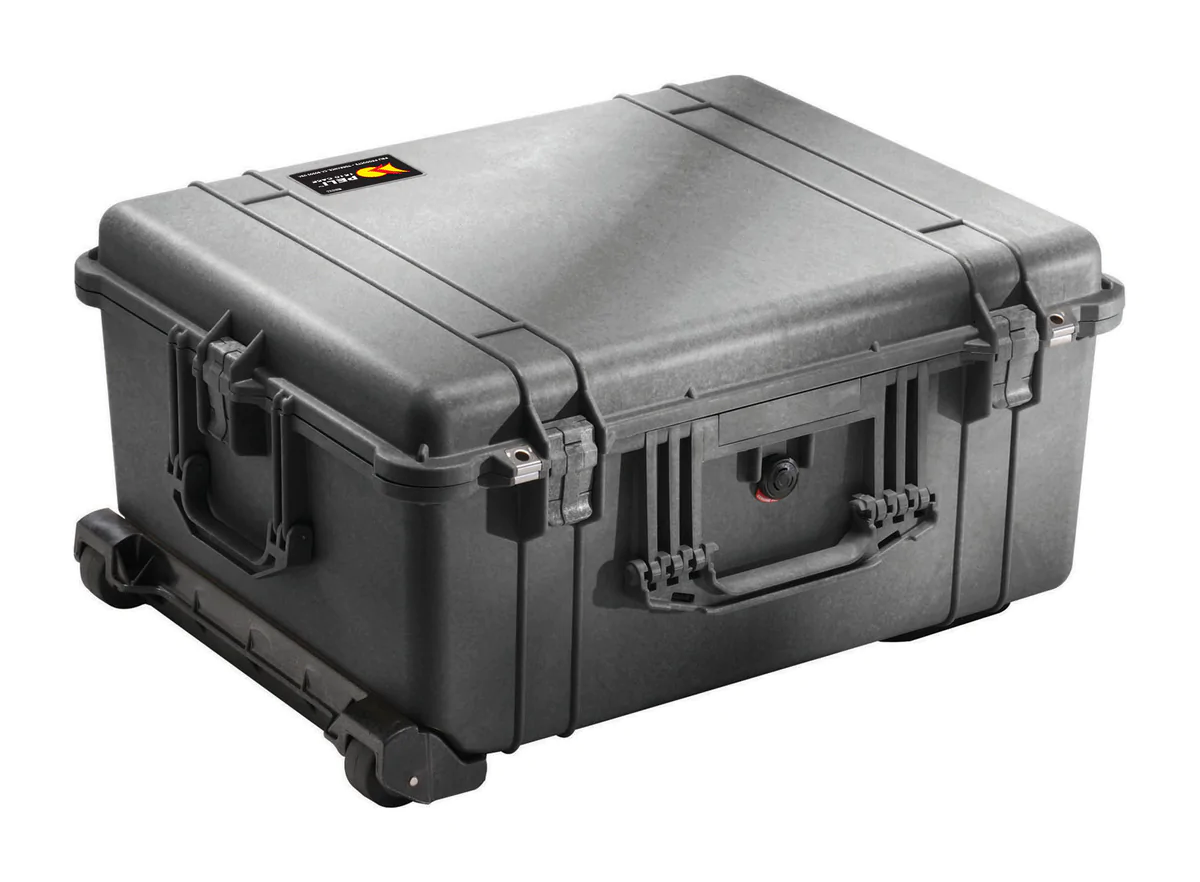 The Peli 1610 is a waterproof, crushproof and dustproof case for carrying important items. It features strong wheels and retractable pull handle to aid in transport.