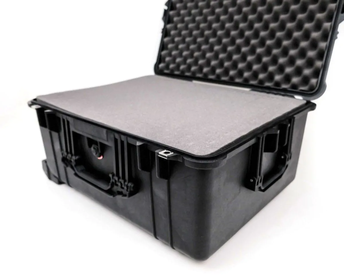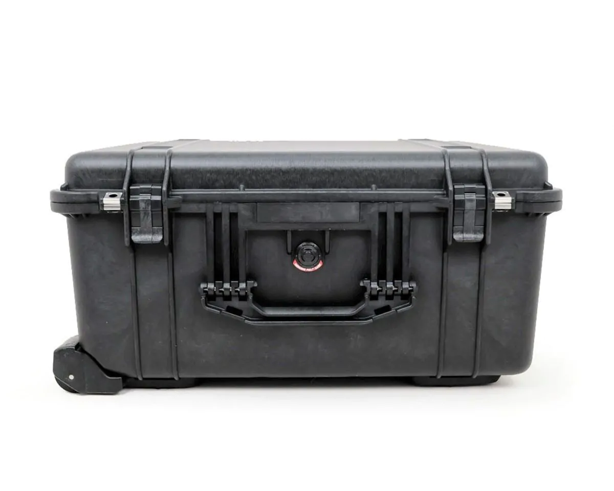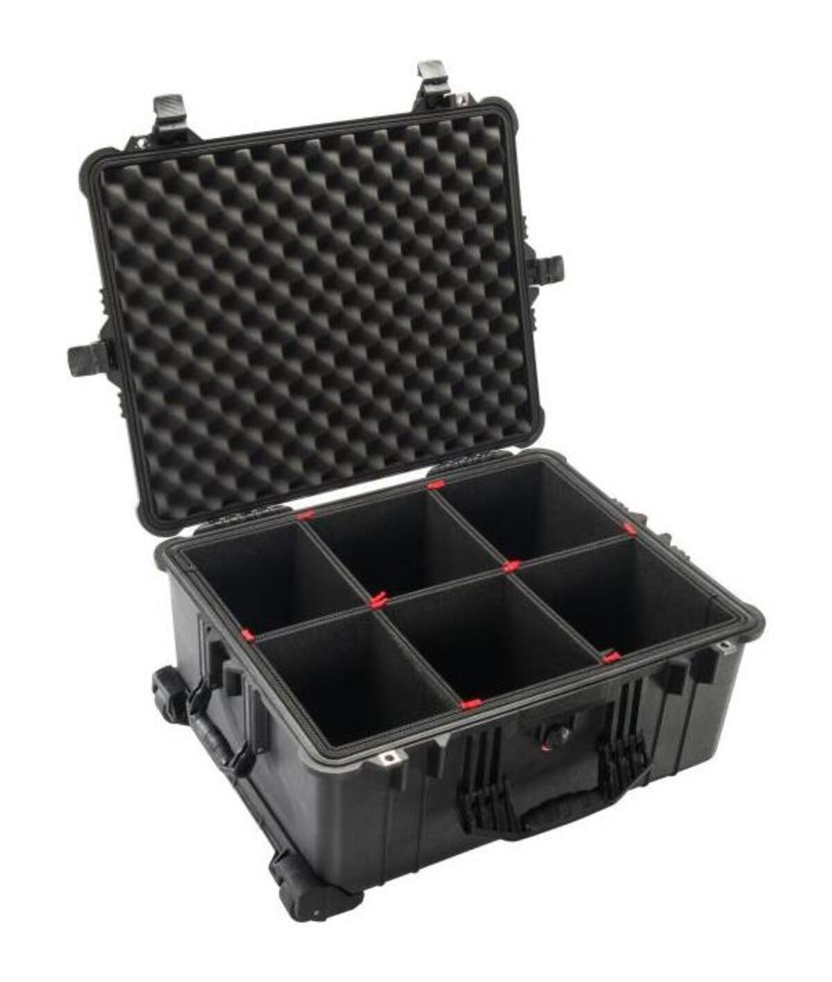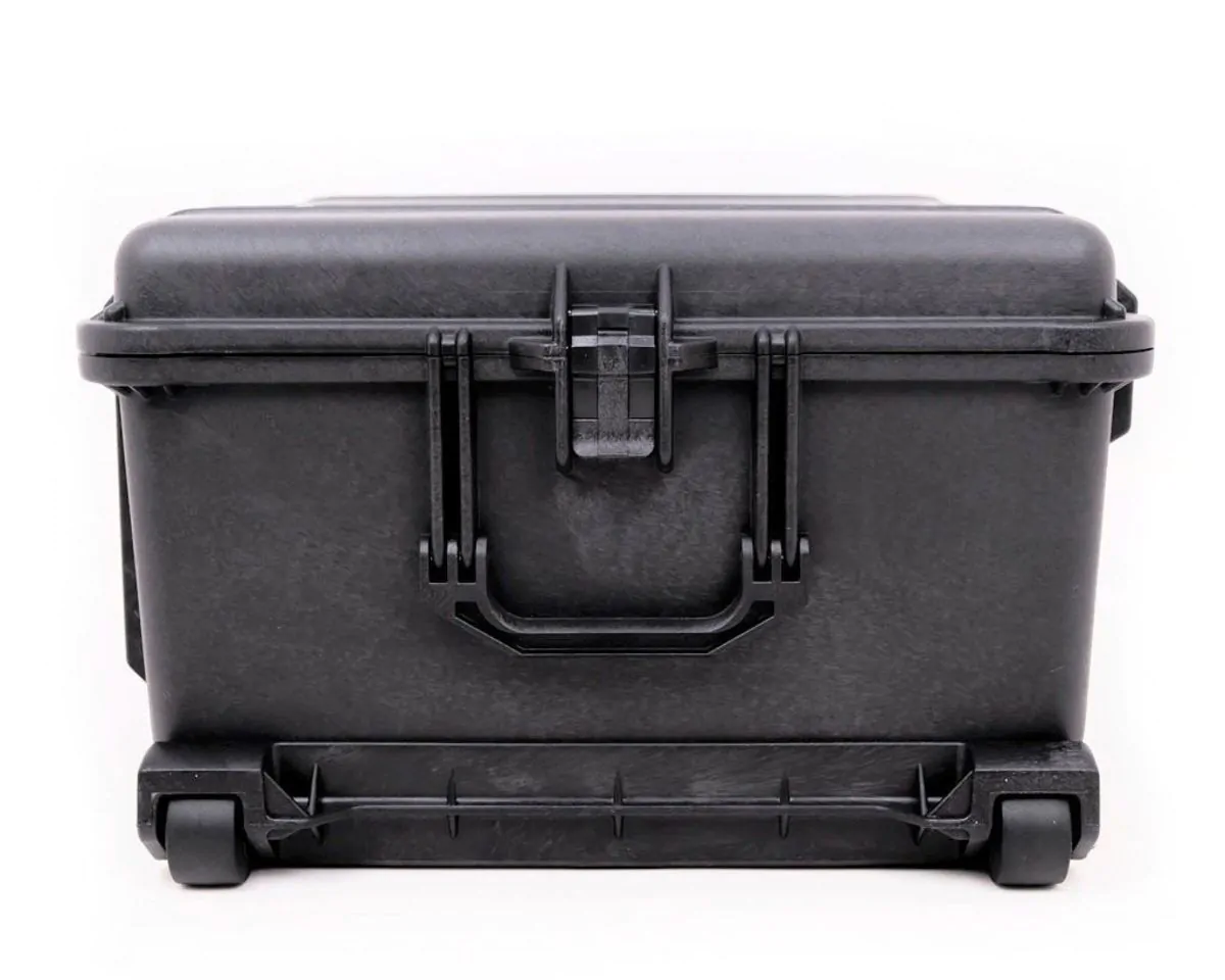 The Peli 1610 is a waterproof, crushproof and dustproof case for carrying important items. It features strong wheels and retractable pull handle to aid in transport.