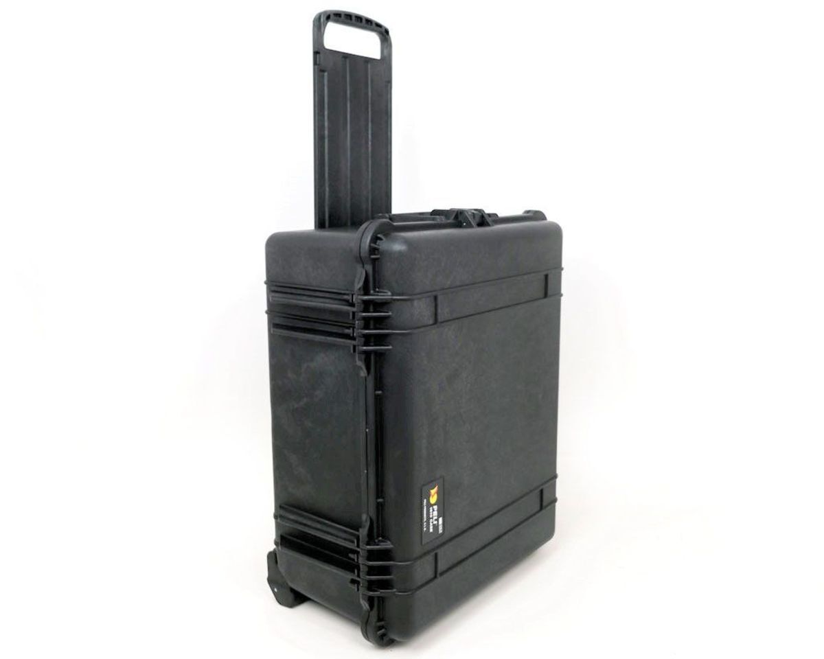 The PELI™ 1610 comes with 5 cm rubber wheels and a retractable handle. The high-density pick and pluck foam supplied will protect your equipment from shock, drops, and everyday wear and tear. The Peli 1610 has 5 layers of foam, including one layer of corrugated lid foam. These cases are unbreakable, watertight, airtight, and chemical/corrosion-proof as they are made from an ultra-high impact structural copolymer complete with an O-ring forming a watertight seal, with an automatic purge valve for equalization. It also protects against rough handling, dust, and water, and carries the legendary “you break it, we replace it” lifetime guarantee.