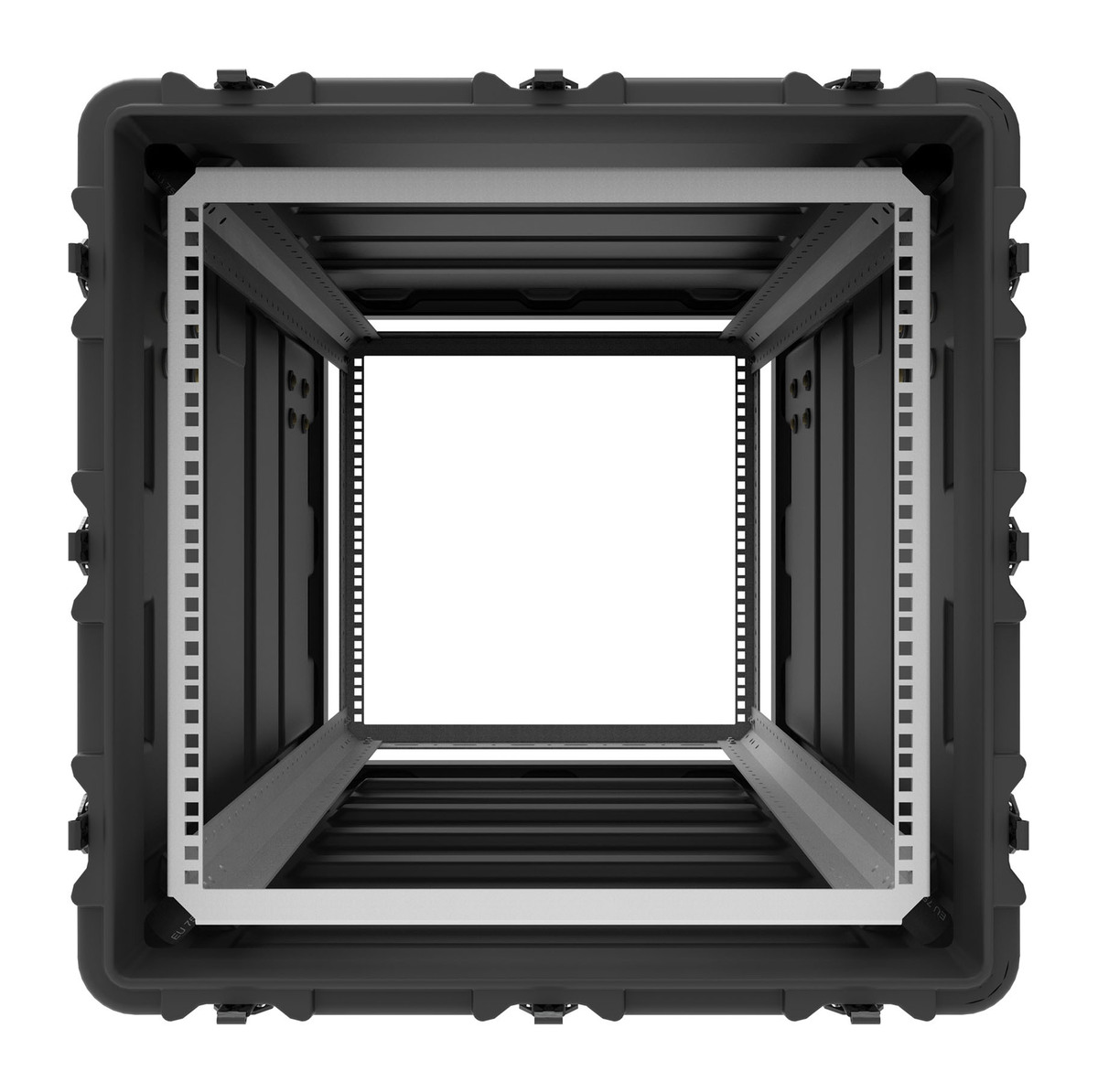 The Euro-V Rack Case is a robust, standard solution designed for fast deployment. It features a steel rack with an industry-standard square hole pattern (M6), supporting metric-mounted equipment. Available in 9 sizes with 610mm and 760mm depths, it delivers dependable shock protection in a lightweight, durable design.