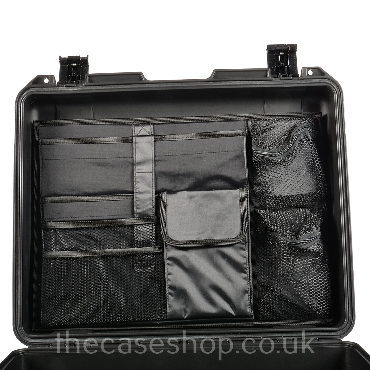 PELI™ STORM CASE™ Lid organizers are designed to hold documents, notebooks, and small electronic devices in expandable folder pockets. In addition to folder pockets and sleeves for office supplies, the utility organizers include several versatile mesh nylon zipper pockets. These are perfect for housing items such as PDAs, first aid supplies, film, rechargeable batteries, and camera filters. Every type of organizer is delivered loose—with hook and loop Velcro straps—for you to adapt to your specific needs.