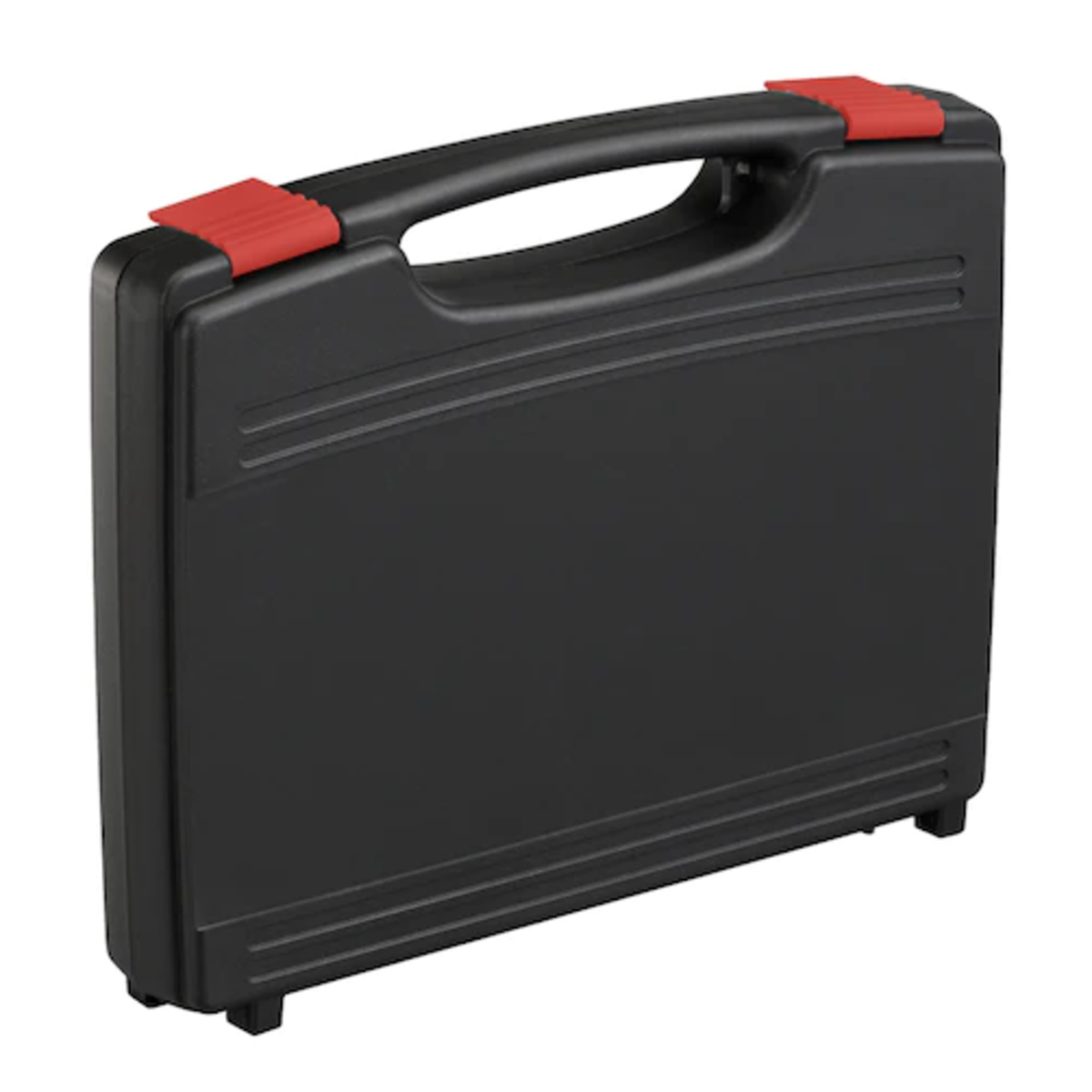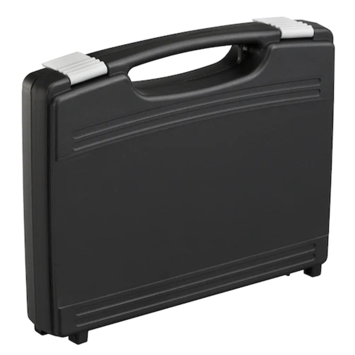 Plastic packaging Case 170/26H44 from the Advanced series with internal dimensions of 248 x 160 x 39 mm / 9.76 x 6.30 x 1.54 inch. Available in black color with grey clips.