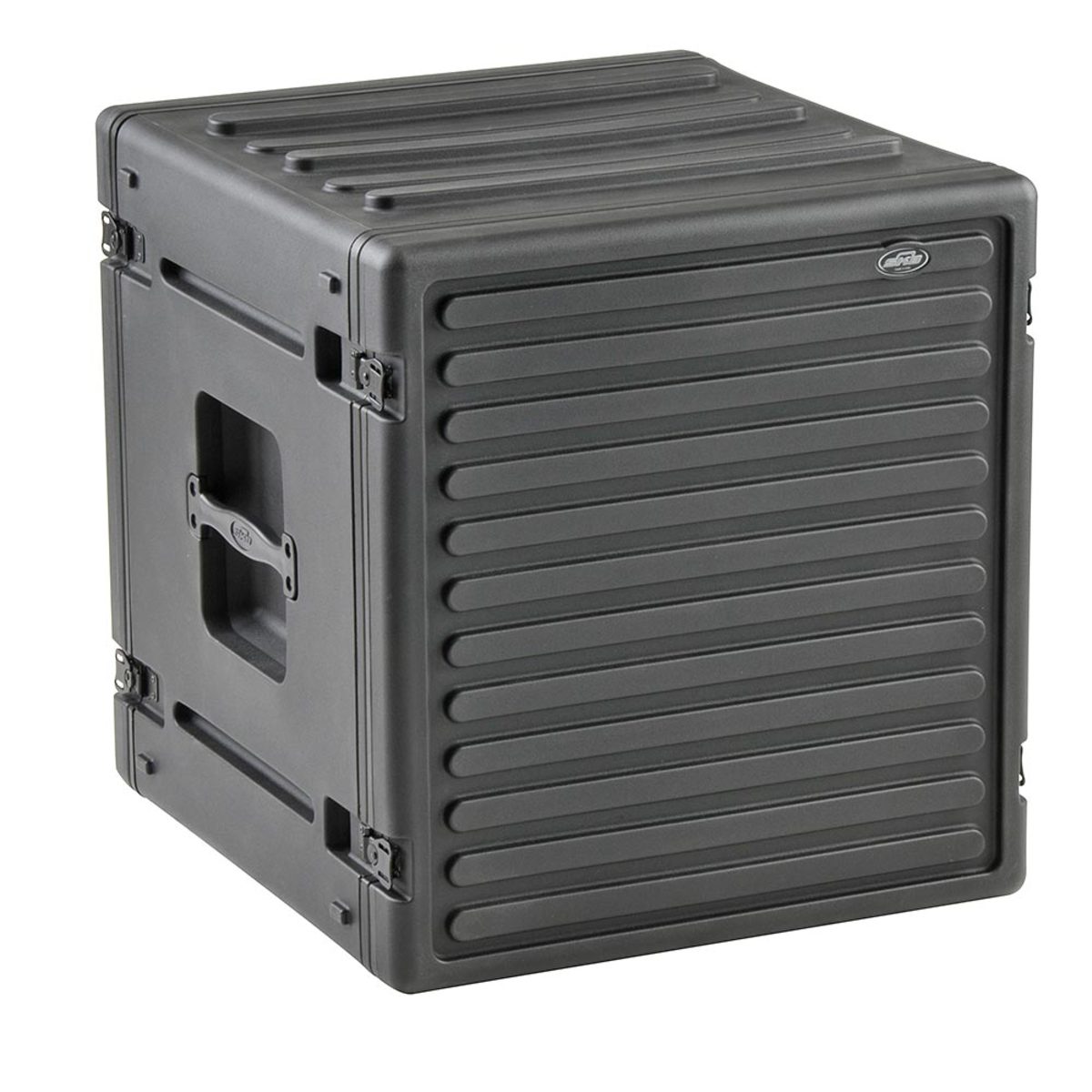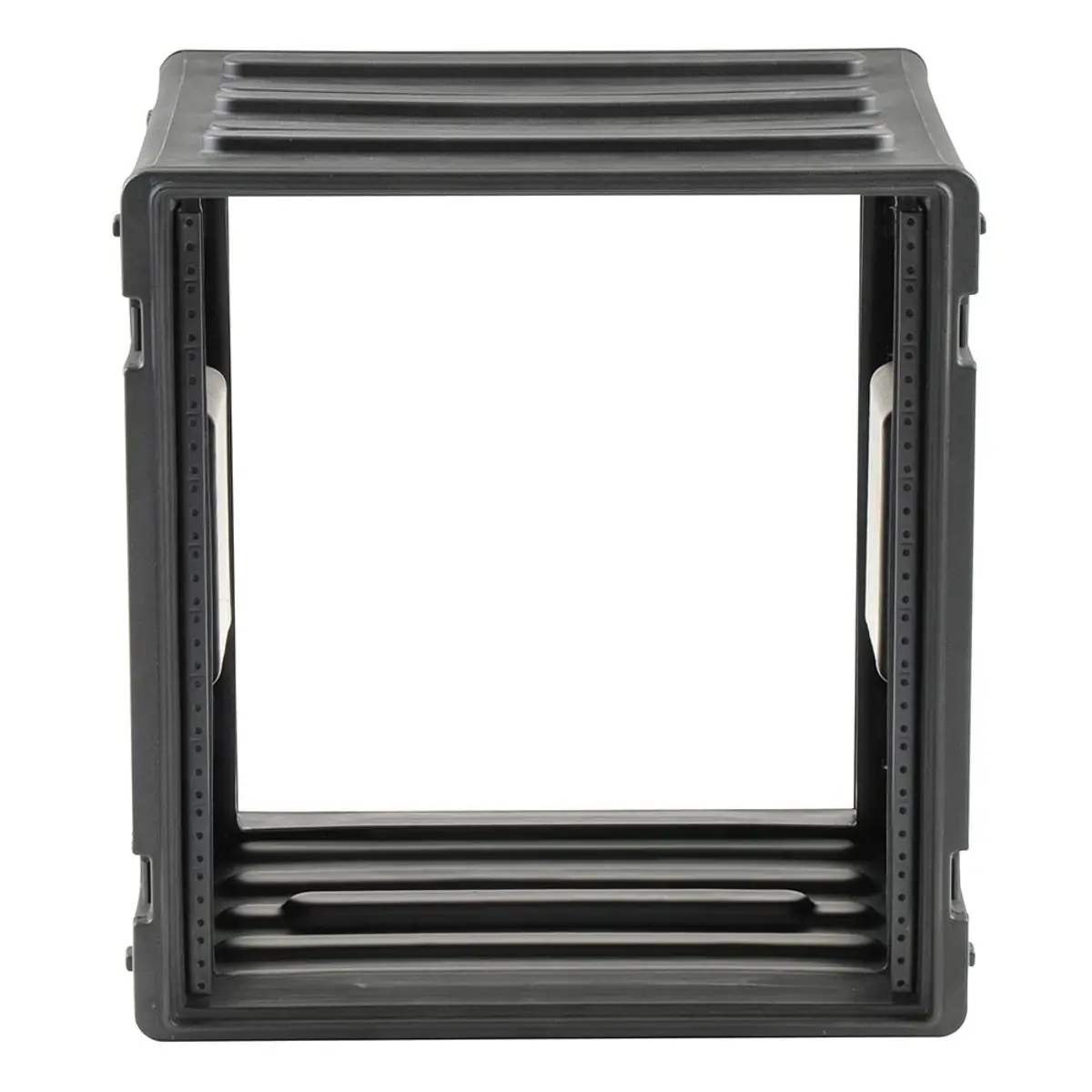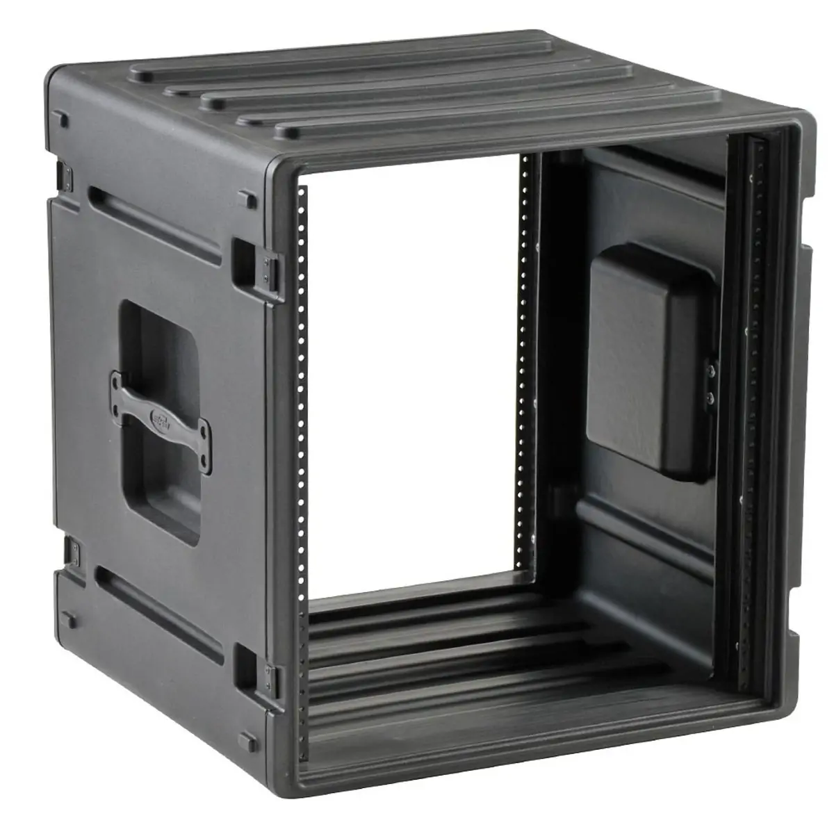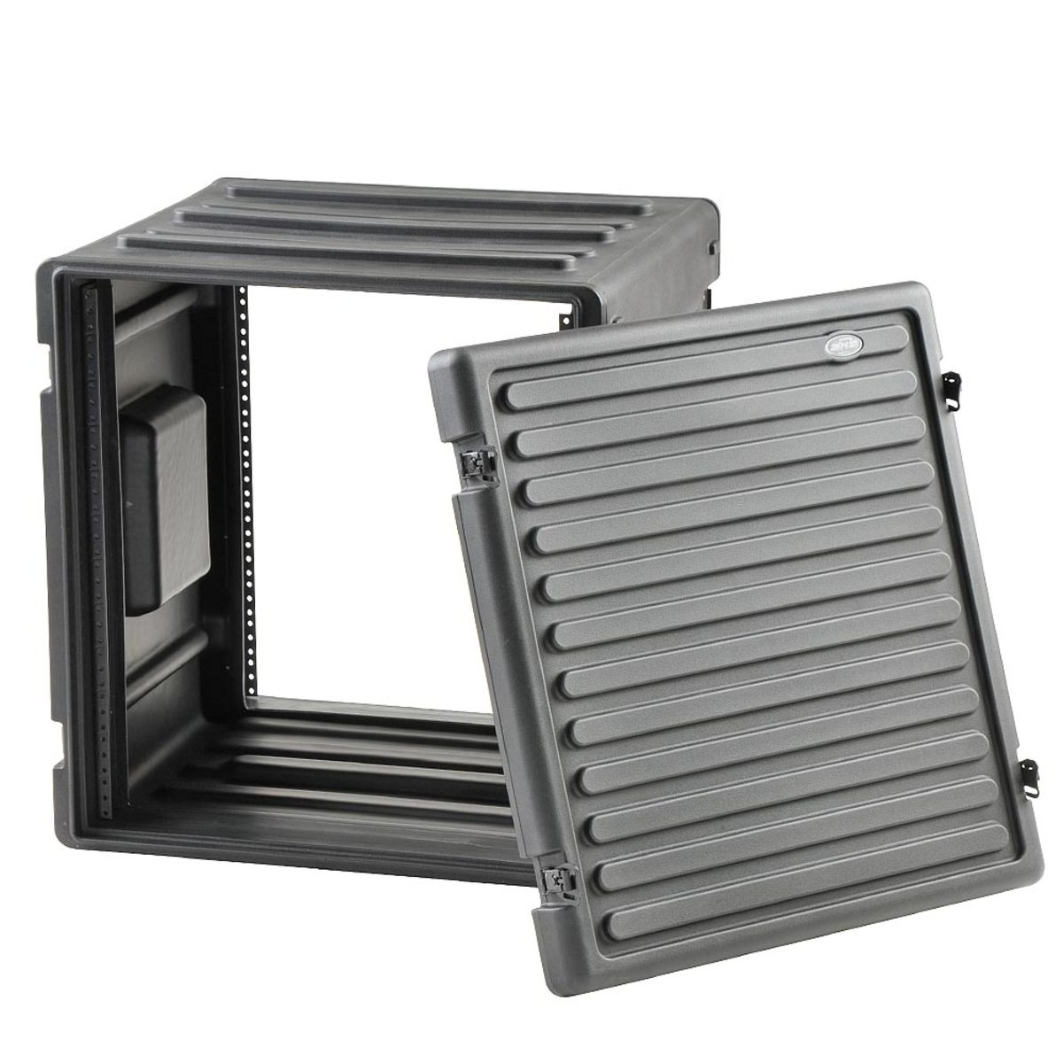 SKB Roto Racks represent the ultimate in American technology with their roto-molded tough shells, front and rear lids, recessed heavy-duty twist latches, molded in handles, and shock absorbing rubber feet for solid stackability. The unique molded-in unbendable valance and steel threaded rails with self tapping screws make the SKB Roto Racks durable and convenient to use.
