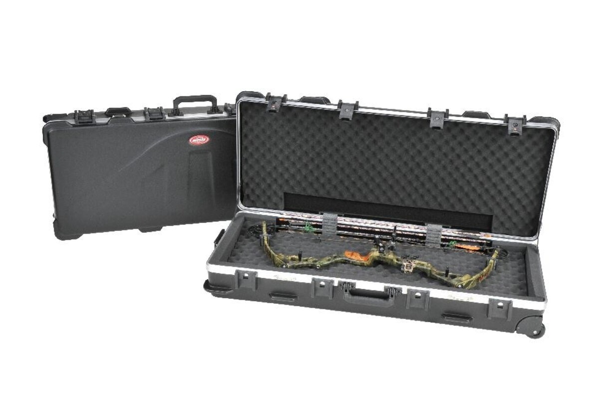 The 2SKB-4114A Parallel Limb Bow Case is airline approved made to ATA 300 Category I specifications which is the highest shipping container specification of the ATA. This case is designed to transport two Parallel Limb Bows, or a Parallel Limb Bow and rifle.The case is molded from ultra-high molecular weight polyethylene, the material specified by the U.S. military for cases and containers. The 2SKB-4114A Parallel Limb Bow Case feature heavy-duty field replaceable locking latches, a spring-loaded end handle for comfortable towing and protection from damage, molded-in bumper protection to maximize impact resistance and quiet glide heavy duty wheels for easy transport. Secure "tie-down" loops for ATV transport are an added feature and stylish embossing that actually adds structural support to the lid. The 2SKB-4114A Parallel Limb Bow Case is backed by an Unconditional Lifetime Warranty on the case.All SKB ATA Archery Cases also offer a special $1,500 Content Guarantee. In the unlikely event that your bow is damaged by airline handling while transported in an SKB ATA Archery Case, SKB will repair or replace your bow up to $1,500.