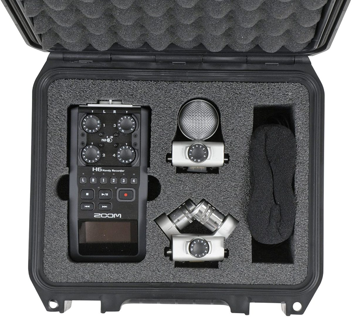This Military-Standard waterproof hard case was specifically designed for the Zoom H6 recorders. The interior is custom cut high quality PE foam that includes space for all the items boxed with the Zoom H6. This includes pockets for the recorder, XYH-6 X/Y mic capsule, MSH-6 MS mic capsule, cables, memory cards, and additional accessories.Not only does the SKB Zoom H6 case provide the ultimate protection for the recorder, it is backed by SKB's unsurpassed Lifetime Warranty.About our iSeries SKB's iSeries injection molded waterproof cases are constructed of ultra high-strength polypropylene copolymer resin and feature a gasketed, waterproof, submersible design (IP67) that is resistant to corrosion and impact damage. Its molded-in hinges, patented "trigger release" latch system, comfortable, snap-down rubber over-molded cushion grip handle, secure stacking, and automatic ambient pressure equalization valve (MIL-STD-648C) all contribute to its military grade design.