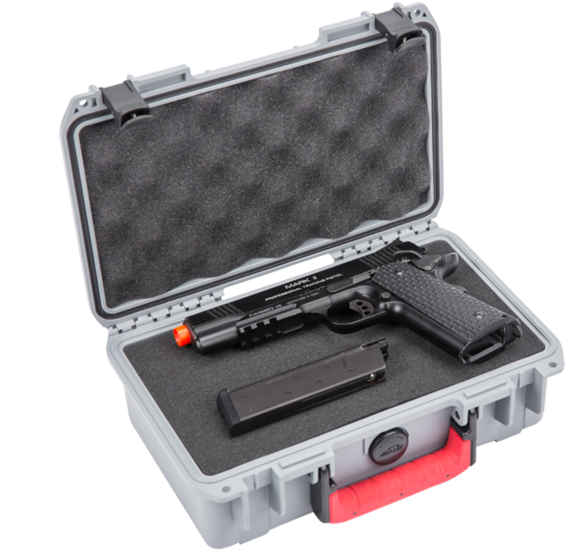 The 3i-1006-3G-PS Pro-Series Pistol/Utility Case is injection molded from ultra high-strength polypropylene co-polymer resin, material specified by the U.S. military for cases and containers. It features a gasketed, water and dust-tight submersible design, meeting military standard MIL-C-4150J. The automatic ambient pressure equalization valve self-regulates for different altitudes meeting military standards MIL-STD-648C and IP67.It is resistant to UV, solvents, corrosion, fungus and impact damage, surpassing military standard MIL-STD-810F. The case features a continuous molded-in hinge with stainless steel pin, a patented "trigger release" latch system, and a comfortable, snap-down, rubber over-molded handle.The 3i-1006-3G-PS is comfortable and durable in transport and secure and stable in storage thanks to SKB's interlocking case design. With two padlockable eyelets, the 3i-1006-3G-PS is completely secure.