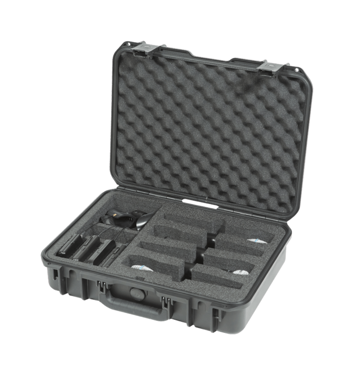 The 3i-1813-5WMC Wireless Mic case is part of the Waterproof Series of cases with a custom foam interior to protect a variety of brands including Shure and Sennheiser mics to name a few.