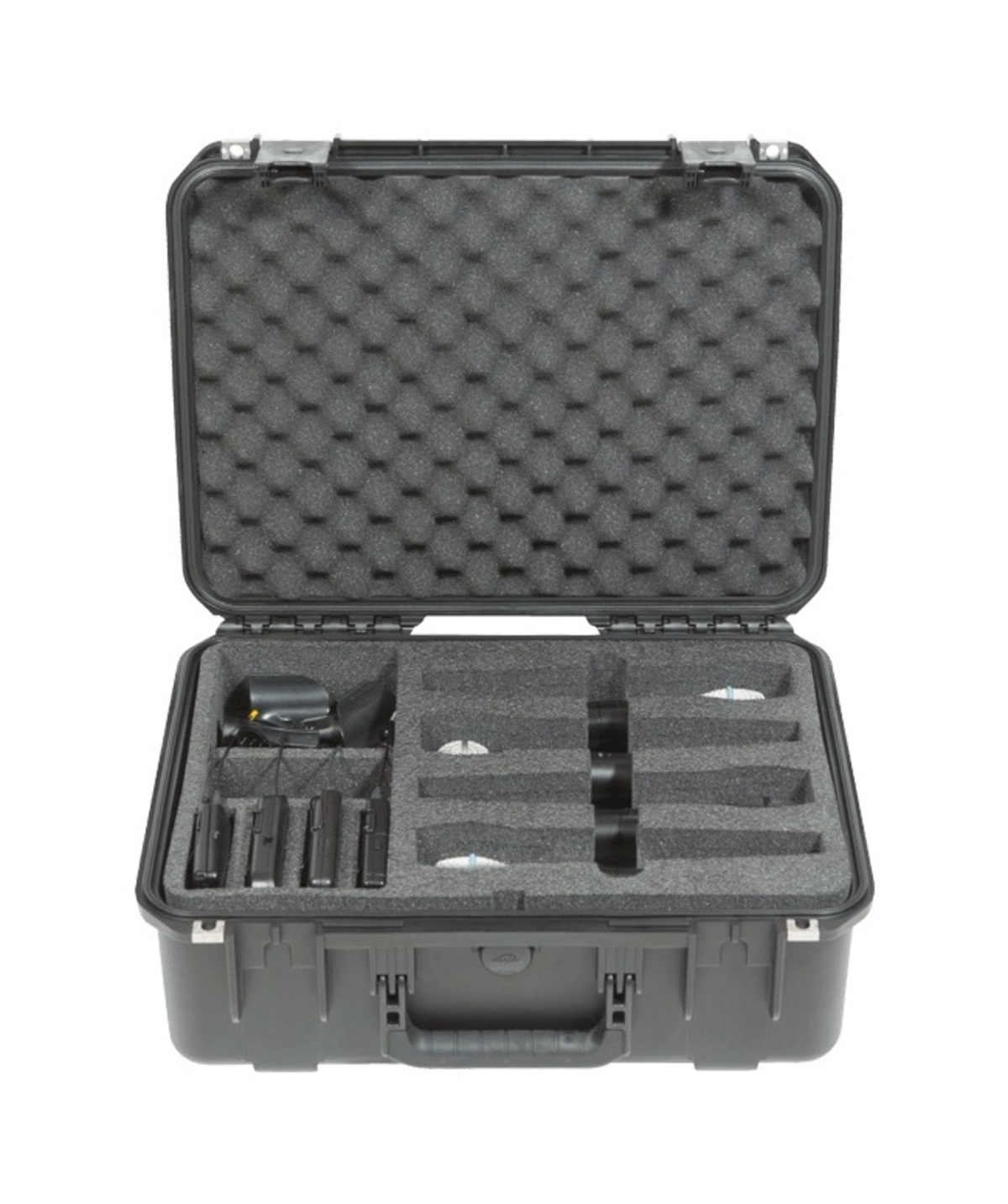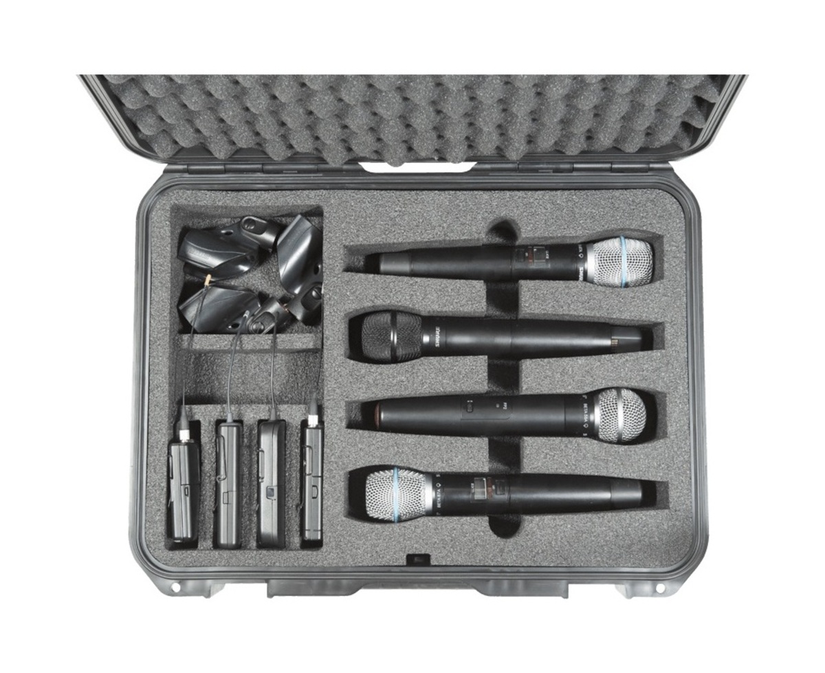 - Custom dual layer foam interior to hold eight wireless mics, body packs and accessories.