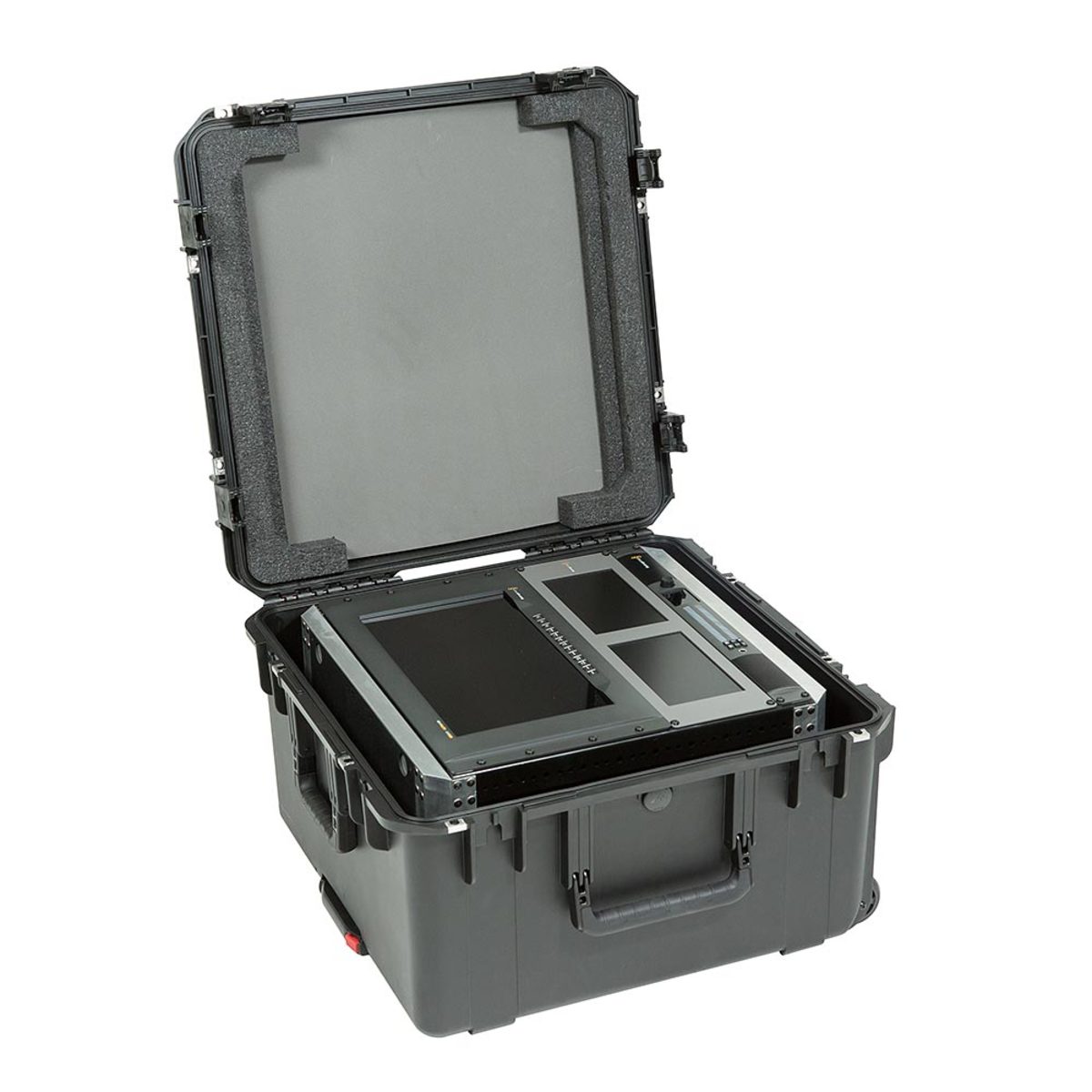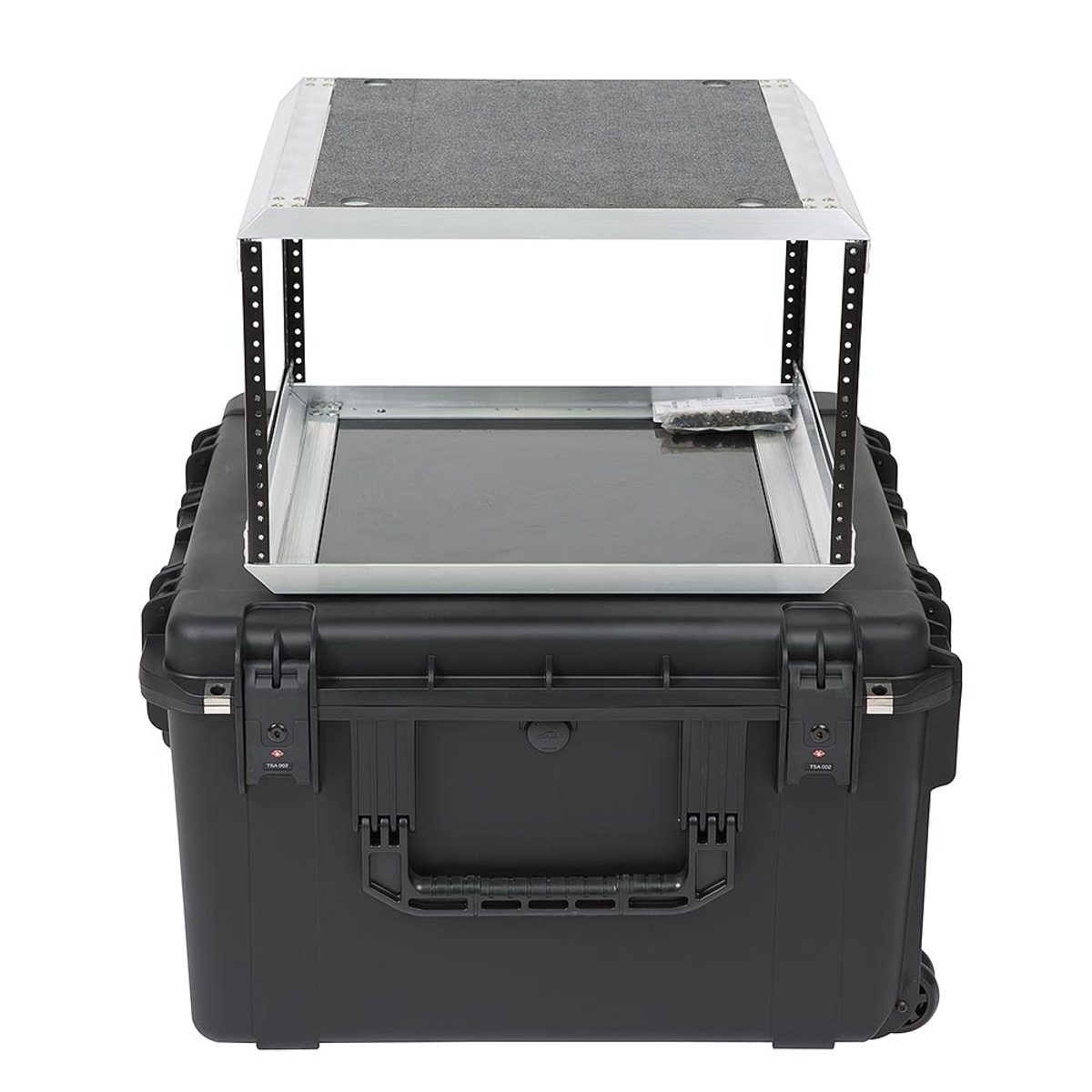 SKB iSeries Fly Racks are injection molded IP67 waterproof cases are constructed of ultra high-strength polypropylene copolymer resin and feature a waterproof, submersible design (IP67) that is resistant to corrosion and impact damage. Molded-in hinges, TSA acceptable trigger release latches, comfortable snap-down rubber over-molded cushion grip handles, secure stacking, and an automatic ambient pressure equalization valve (MIL-STD-648C) all contribute to their military grade design.